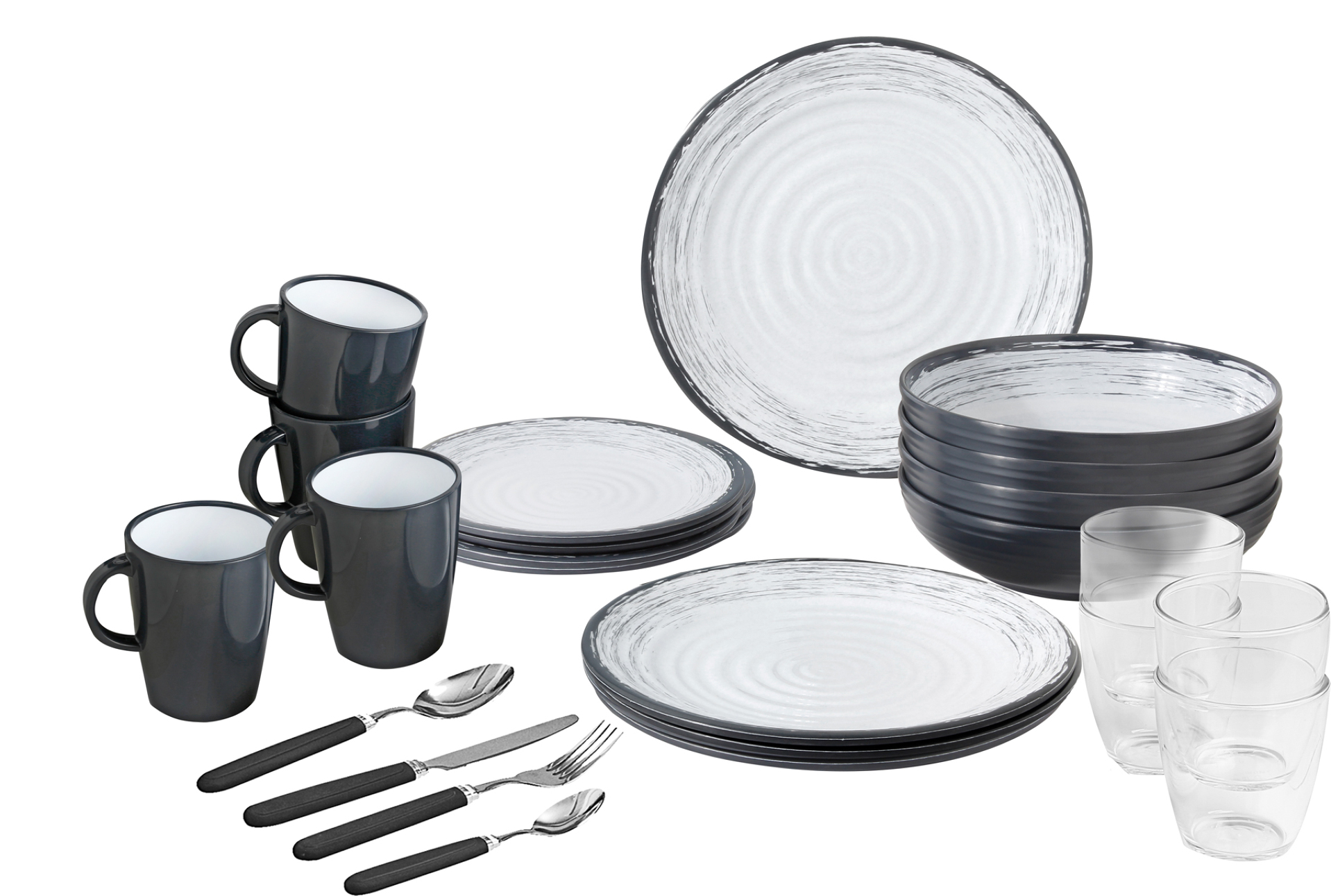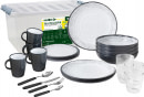 Luxusní 36dílná sada nádobí Brunner Granada All Inclusive pro 4 osoby melamin s porcelánovým vzhledem, protiskluzové dno, sklenice i příbory v sadě, 100% BPA free.