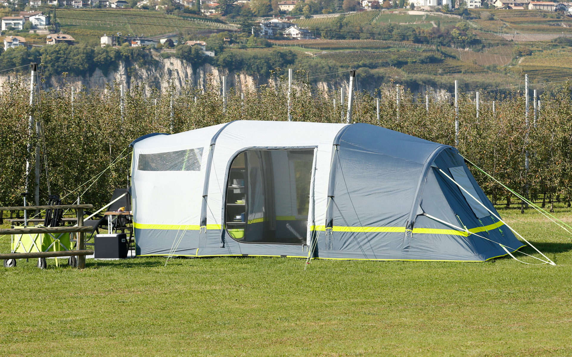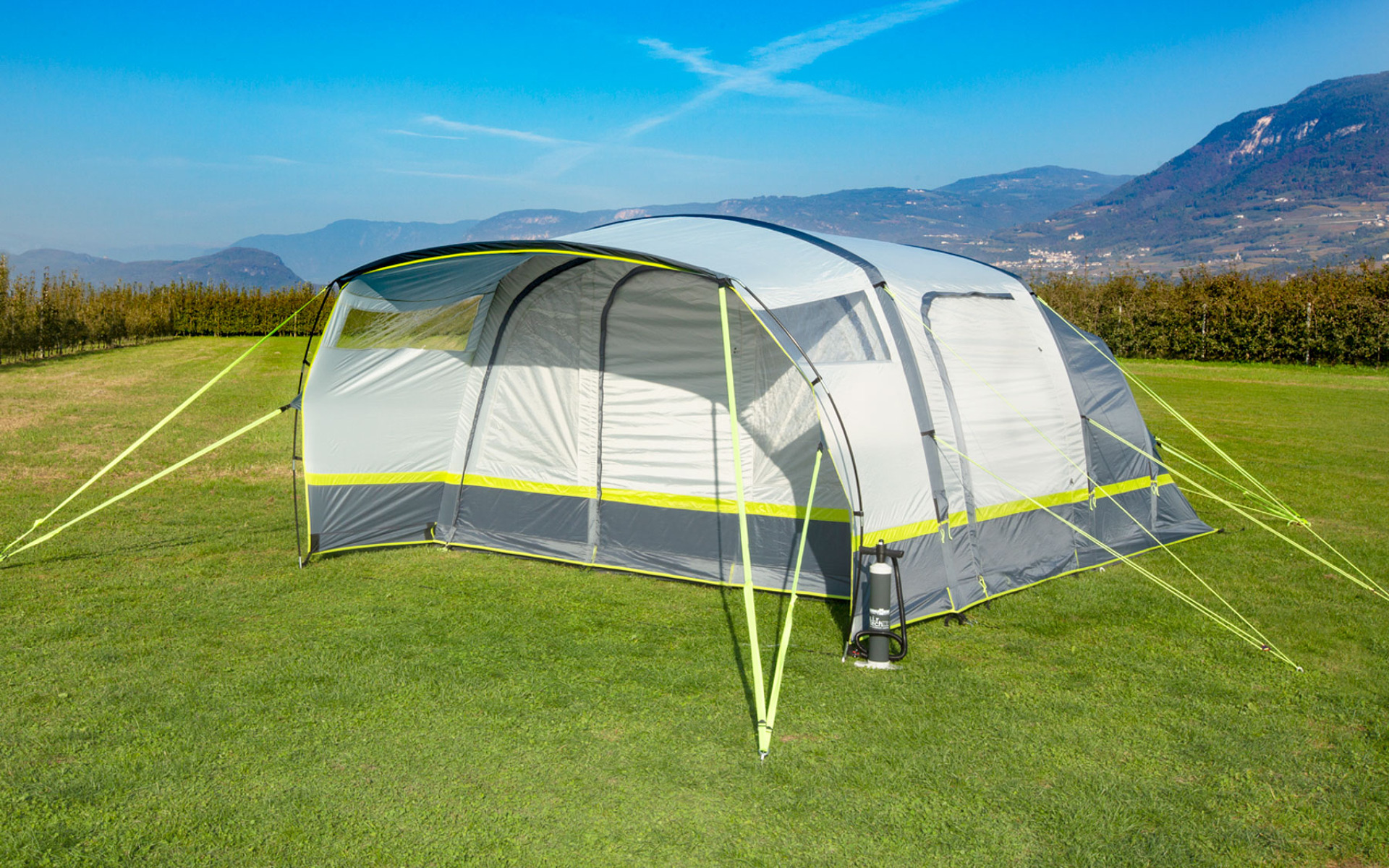 Díky technologii A.I.R. Tech stačí k postavení stanu pouze ruční pumpa, která je součástí balení. Nafukování probíhá skrze tři nezávislé vzduchové trubky, což výrazně urychluje celý proces – stan je připraven k použití během několika minut bez složité manipulace s tyčemi.