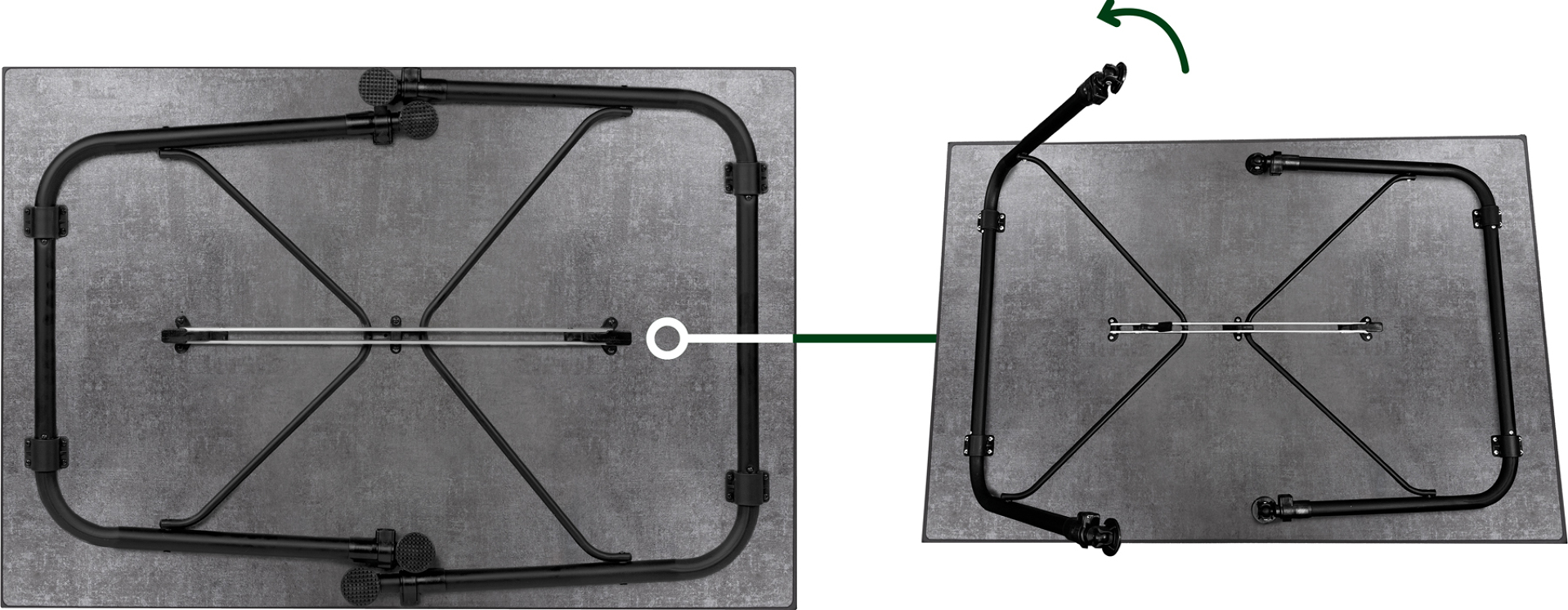 Základem stolu je pevný hliníkový rám s patentovaným vodicím profilem, který zaručuje stabilitu a snadné rozkládání. Rám je lehký, odolný vůči korozi a snadno se čistí.