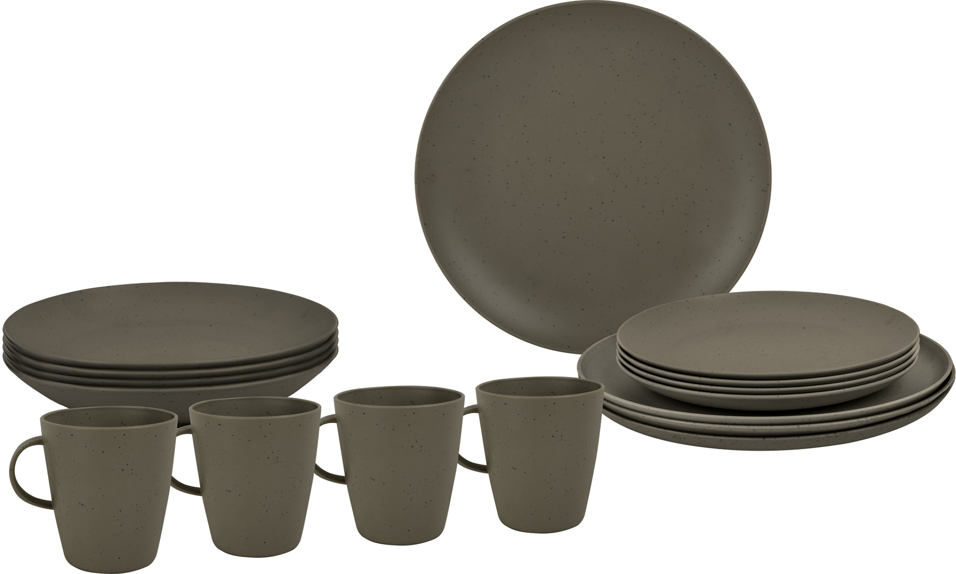 Elegantní 16dílná sada nádobí Brunner Tierra Lunch Box Cocoa pro 4 osoby lehká, nerozbitná a ideální pro karavan, kempování i zahradu.