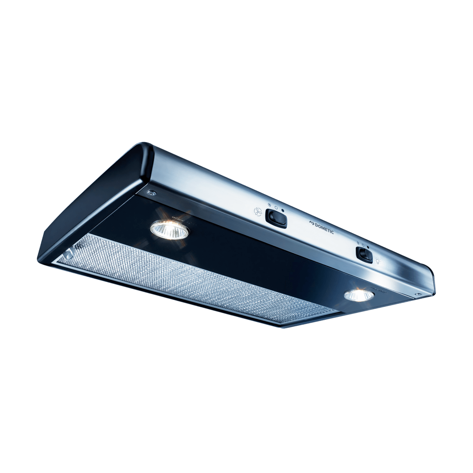 Výkonná digestoř do karavanu s dvourychlostním ventilátorem a halogenovým osvětlením tichá, kompaktní a účinná.