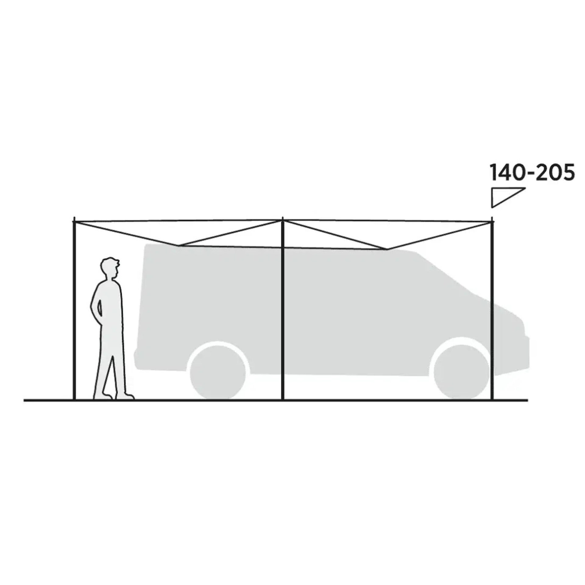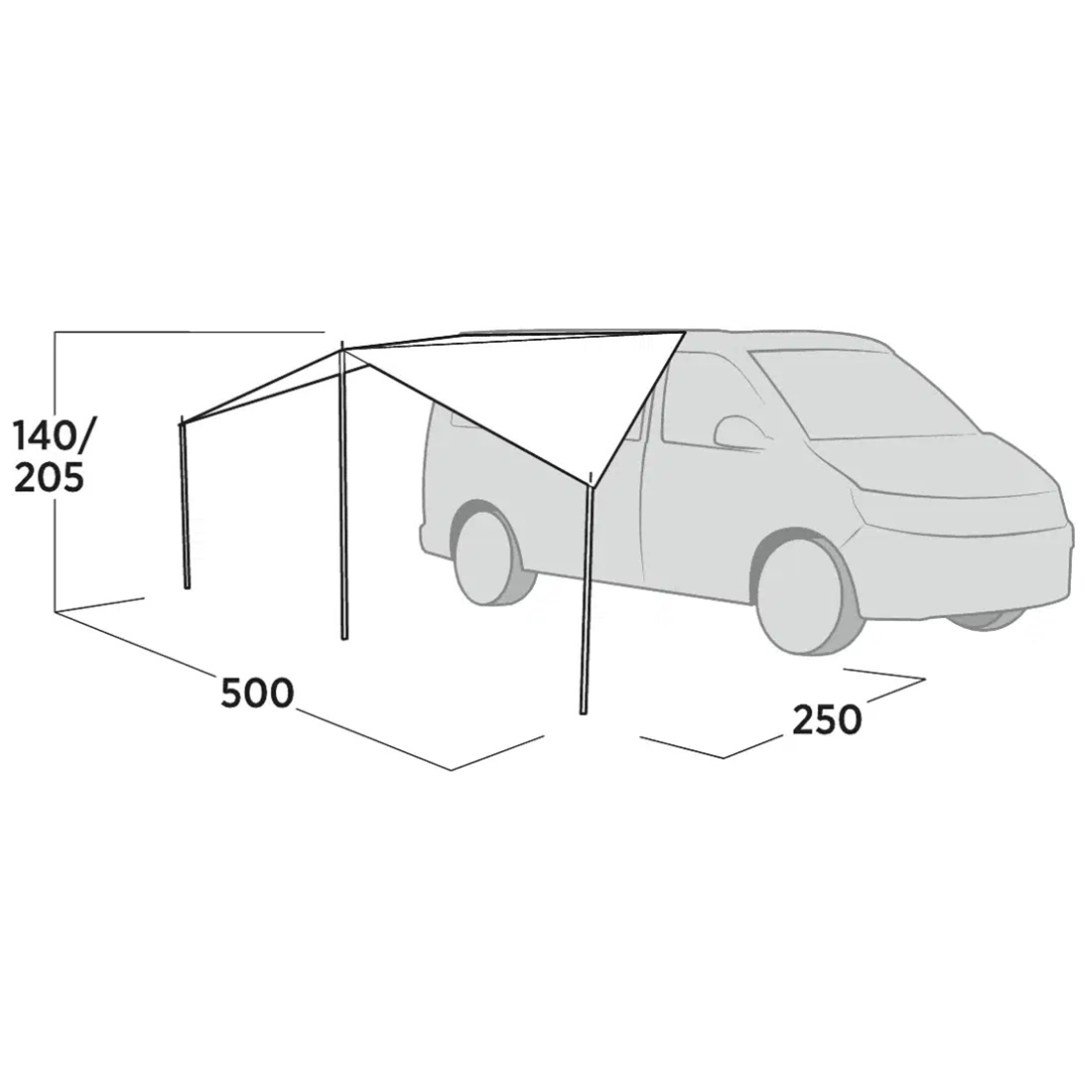 Materiál WeatherGuard 3000 s vodním sloupcem 3000 mm a podlepenými švy zajišťuje spolehlivou ochranu před nepřízní počasí. Přístřešek je tak ideální volbou nejen pro obytná auta, ale i pro víkendové kempování či akce pod širým nebem. Ve sbaleném stavu má kompaktní velikost a snadno se přepravuje.
