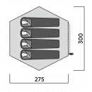 Podlážka je pevně všitá, ale umožňuje ve vstupní části sklopení či přichycení – praktické při větrání nebo deštivém počasí. Konstrukci tvoří odolné duralové pruty EnduraMax, které poskytují pevnost při zachování nízké hmotnosti.