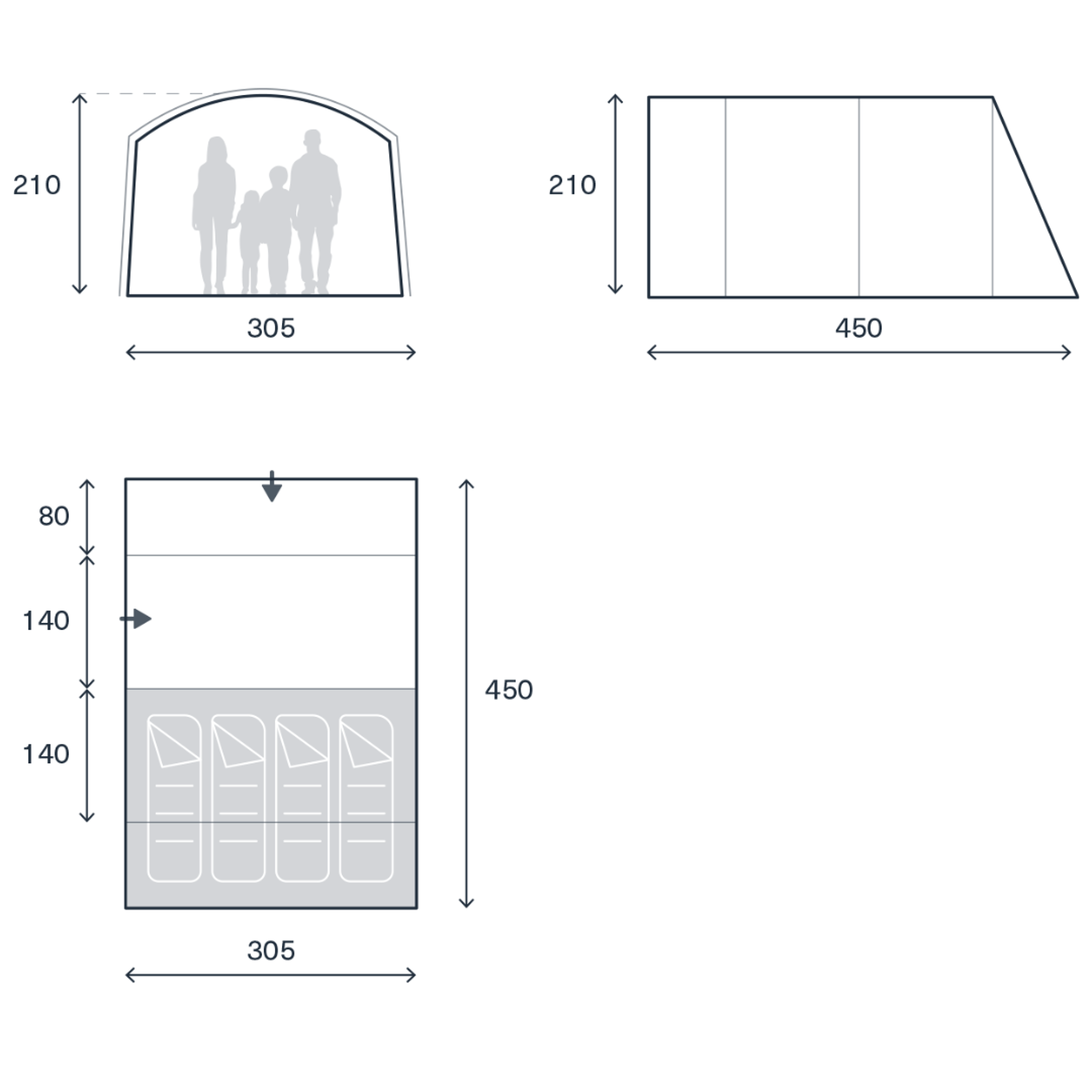 Díky kombinaci odolných materiálů, prostorného designu a praktických funkcí nabízí Kampa Dawlish 04 spolehlivé a komfortní řešení pro rodinné kempování.