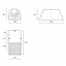 Stan je vybaven pevně všitou podlážkou, která zvyšuje ochranu před vlhkostí a zlepšuje komfort při kempování. Praktickou součástí jsou také vstupy pro elektrický kabel, které umožňují snadné připojení elektrických zařízení.