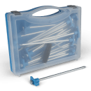 Součástí sady je praktický vytahovač kolíků (peg puller), který usnadňuje jejich vytažení i z tvrdého podkladu, a odolný tvrdý přepravní kufřík, ve kterém jsou kolíky bezpečně uloženy. To zajišťuje snadné přenášení i skladování bez nepořádku.