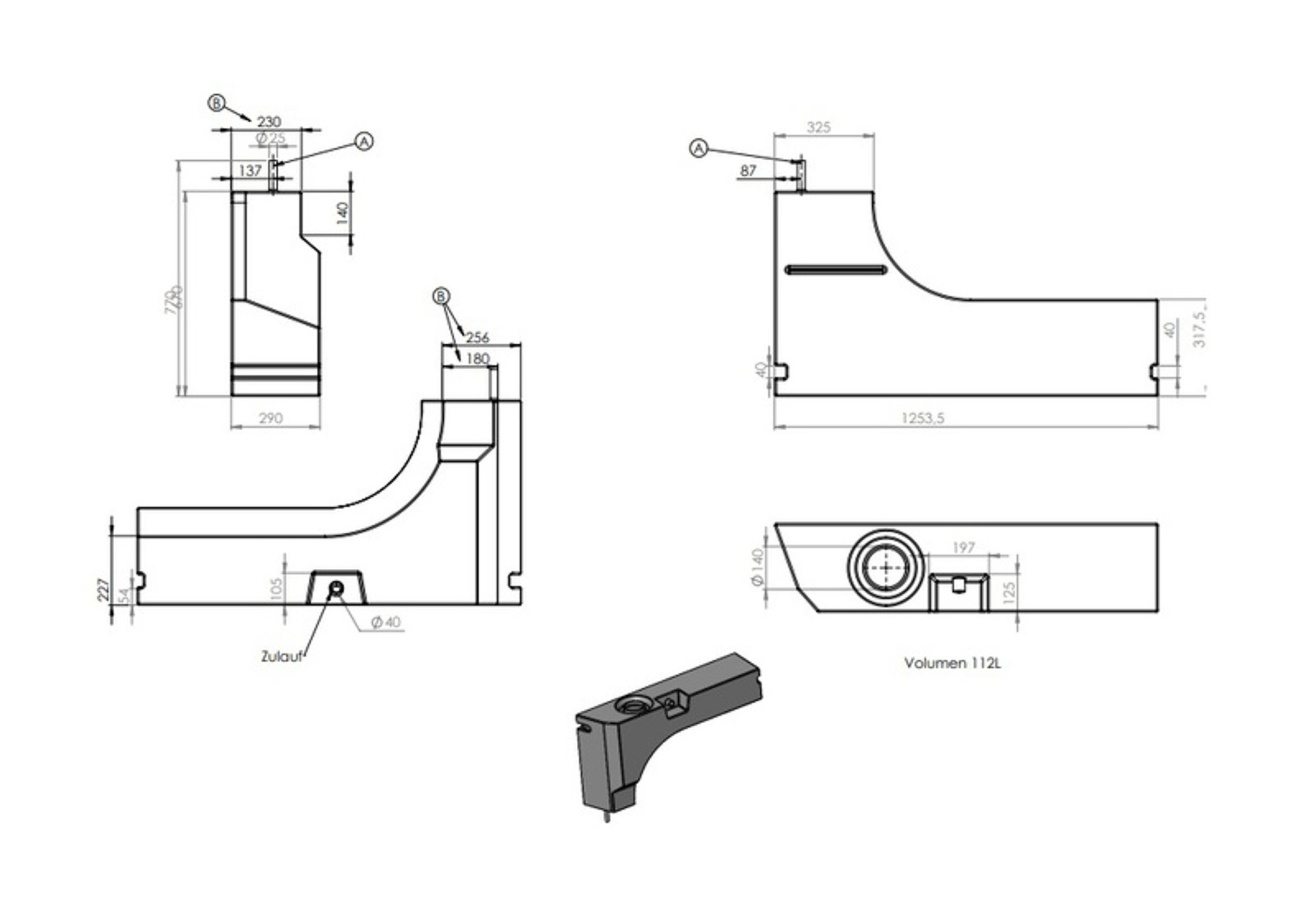 Nádrž vhodná pro dodávky Ducato, Jumper, Boxer, ideální k instalaci na podběh pravého zadního kola. Objem 112 litrů. S výpustí.