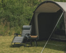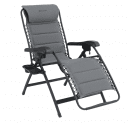 Stylové a pohodlné kempingové křeslo s polohovatelným opěradlem, odnímatelnou opěrkou hlavy a praktickým bočním stolkem.