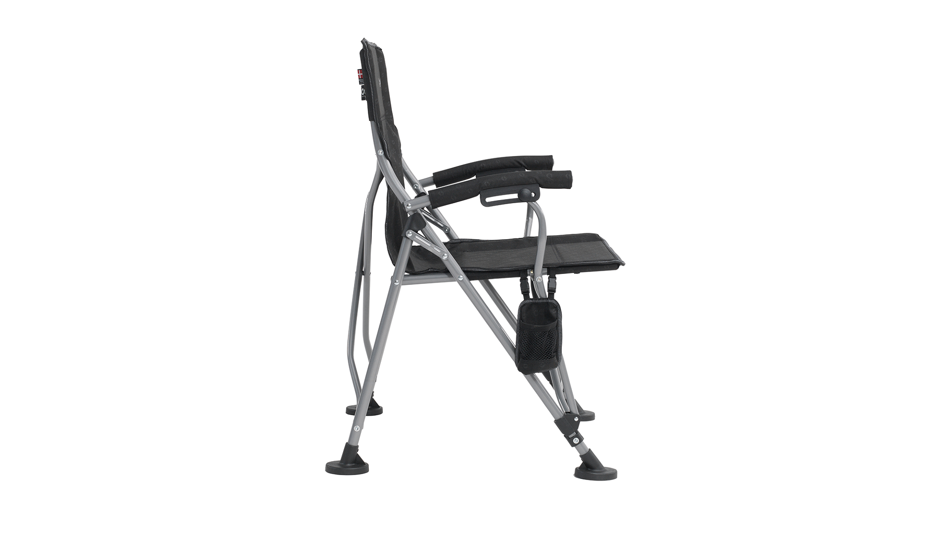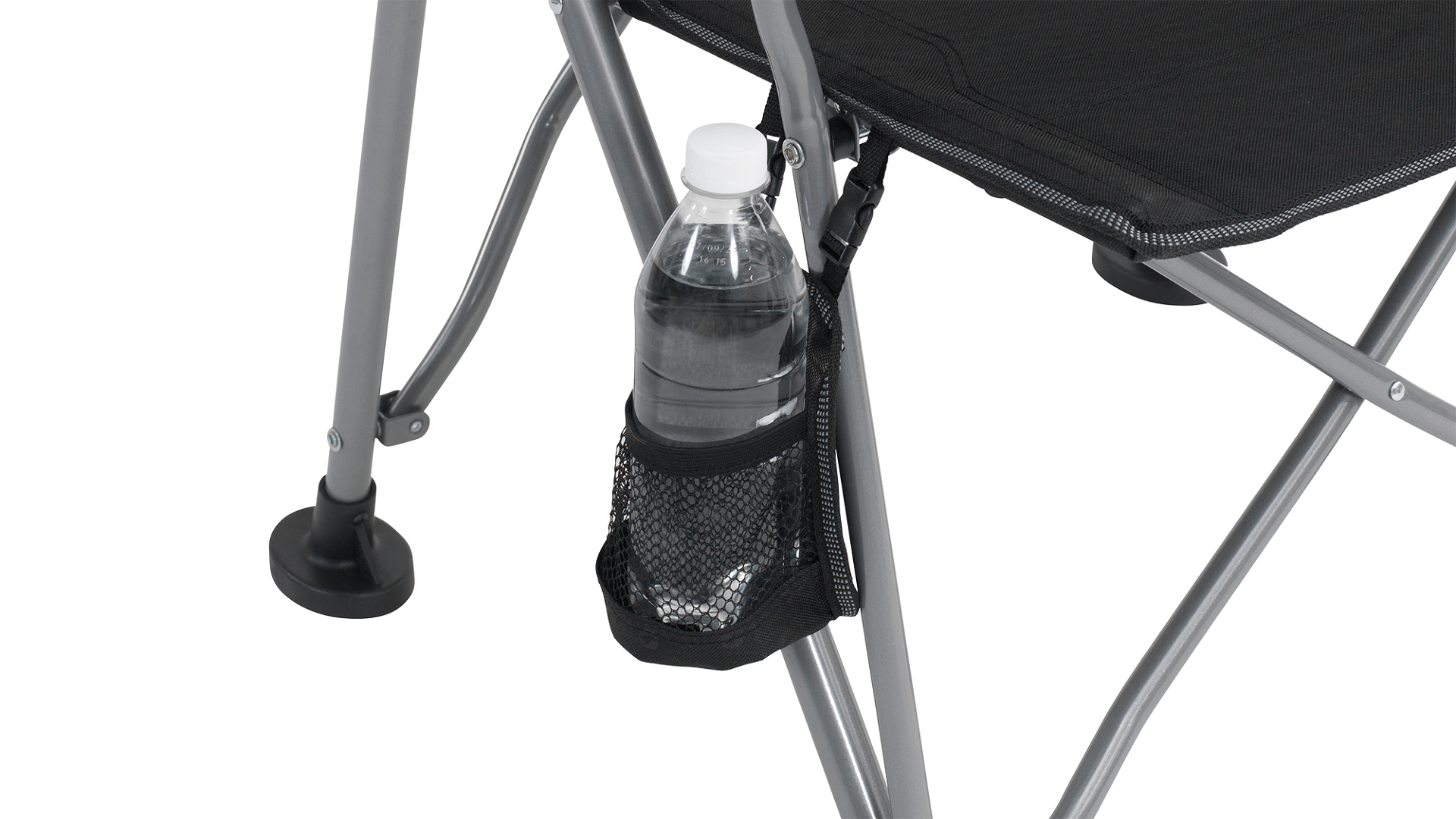 Křeslo je vybaveno polstrovanými opěrkami rukou pro větší pohodlí, odnímatelným držákem na nápoje, který lze připevnit na obě strany křesla, a velkými nohami, které zajišťují lepší stabilitu na nerovném terénu. Uzamykací mechanismus rámu zabraňuje nechtěnému složení během používání.