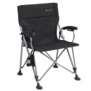 Odolné skládací křeslo s polstrovanými opěrkami, velkými nohami a odnímatelným držákem na nápoje. Ideální pro kempování a outdoorové aktivity. Černá barva. Nosnost 125 kg.