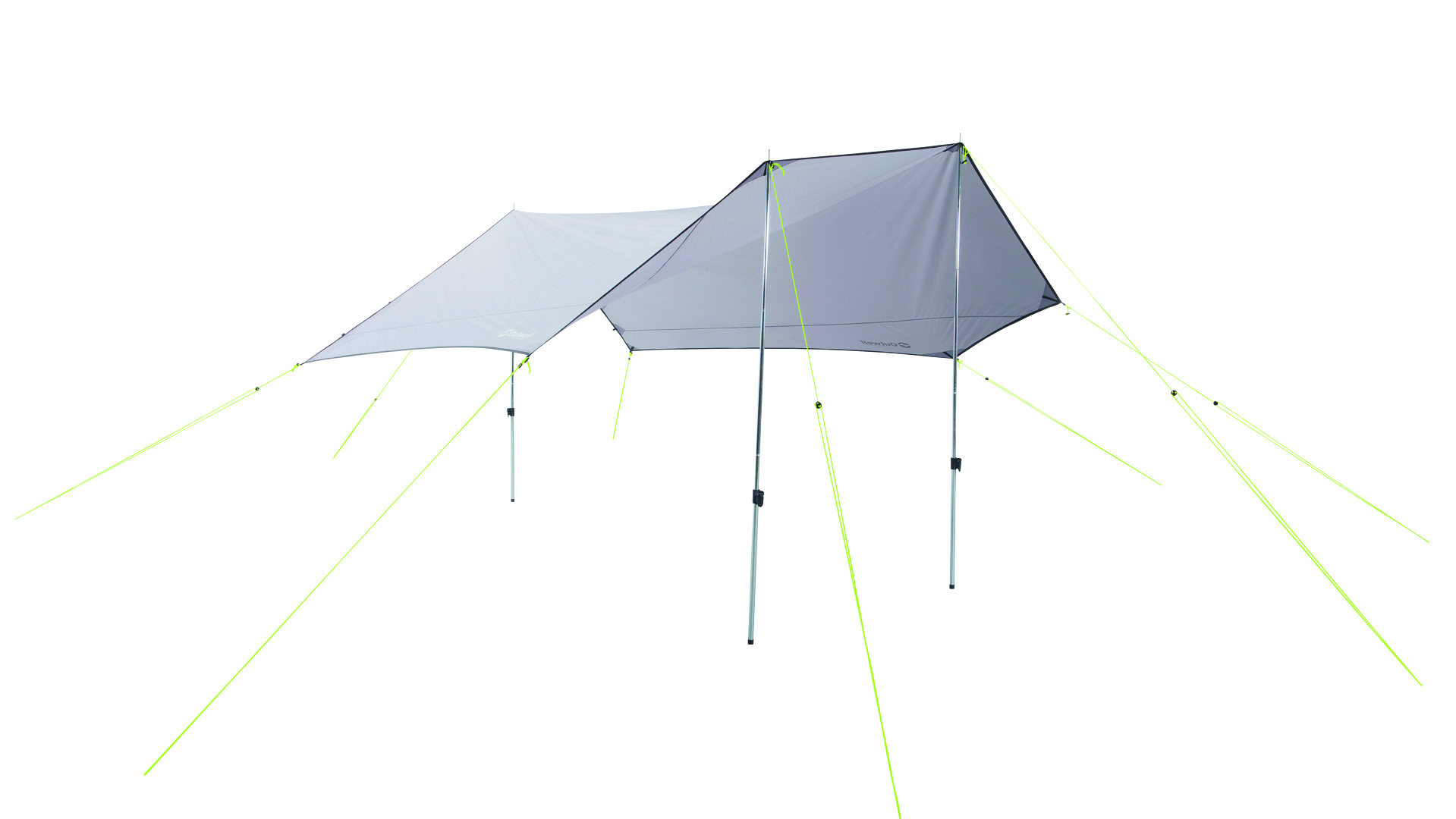 Díky třem nastavitelným ocelovým tyčím lze plachtu snadno přizpůsobit výšce okolního terénu či konkrétnímu typu stanu. Kvalitní polyesterový materiál Outtex 6000 Pro s vodním sloupcem 6000 mm zajišťuje vysokou odolnost vůči dešti a UV záření (UPF 50+), takže poskytne spolehlivou ochranu i během nepříznivého počasí.