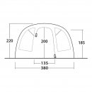 Výška stanu 220/210 cm (v nejvyšším bodě)