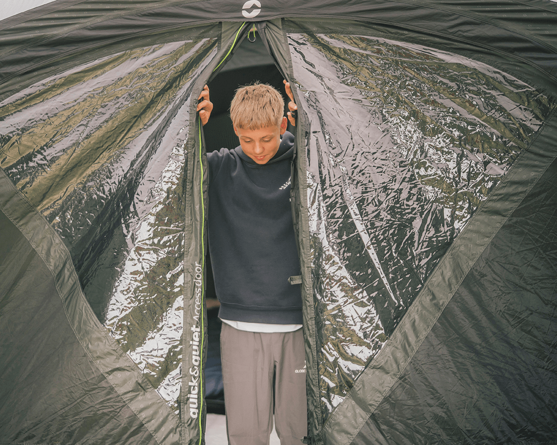 Velká okna s PVC panely a síťovinou mají samostatné závěsy pro individuální nastavení soukromí. Další ventilaci zajišťují dvě extra velké boční dveře s moskytiérou.