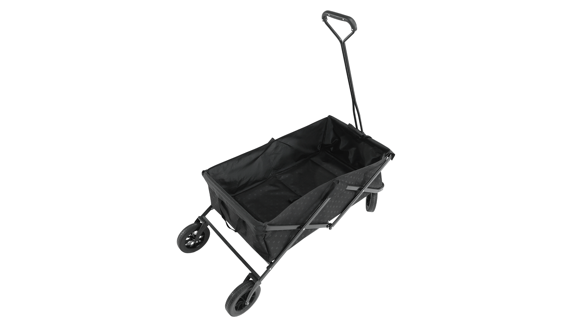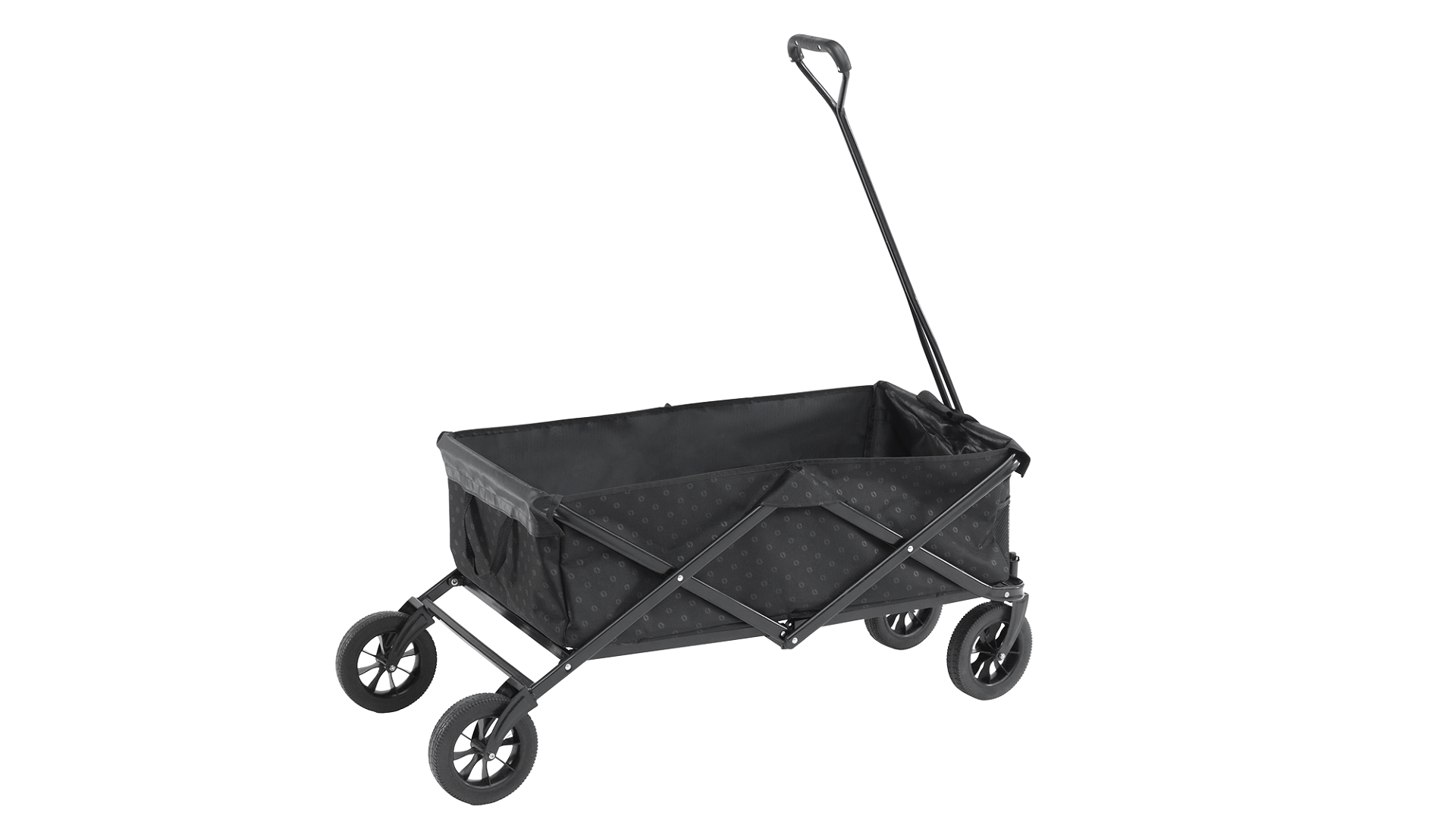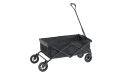 Vozík je vyroben z odolného materiálu 300 × 600D embosovaný polyester, který poskytuje pevnost a dlouhou životnost při používání v outdoorovém prostředí. Stabilitu zajišťuje pevný ocelový rám s práškovou povrchovou úpravou, který je navržen pro vysokou odolnost při zatížení.
