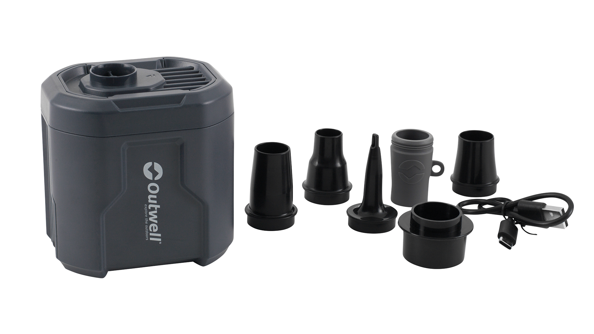 Díky dobíjecí Li-ion baterii (11.1V, 3x 1300 mAh) a USB-C nabíjení je perfektní pro kempování a outdoorové použití. Dodává se s pěti různými tryskami a Outwell FHF ventilem, což zajišťuje širokou kompatibilitu.
