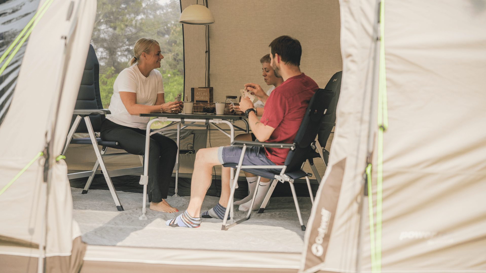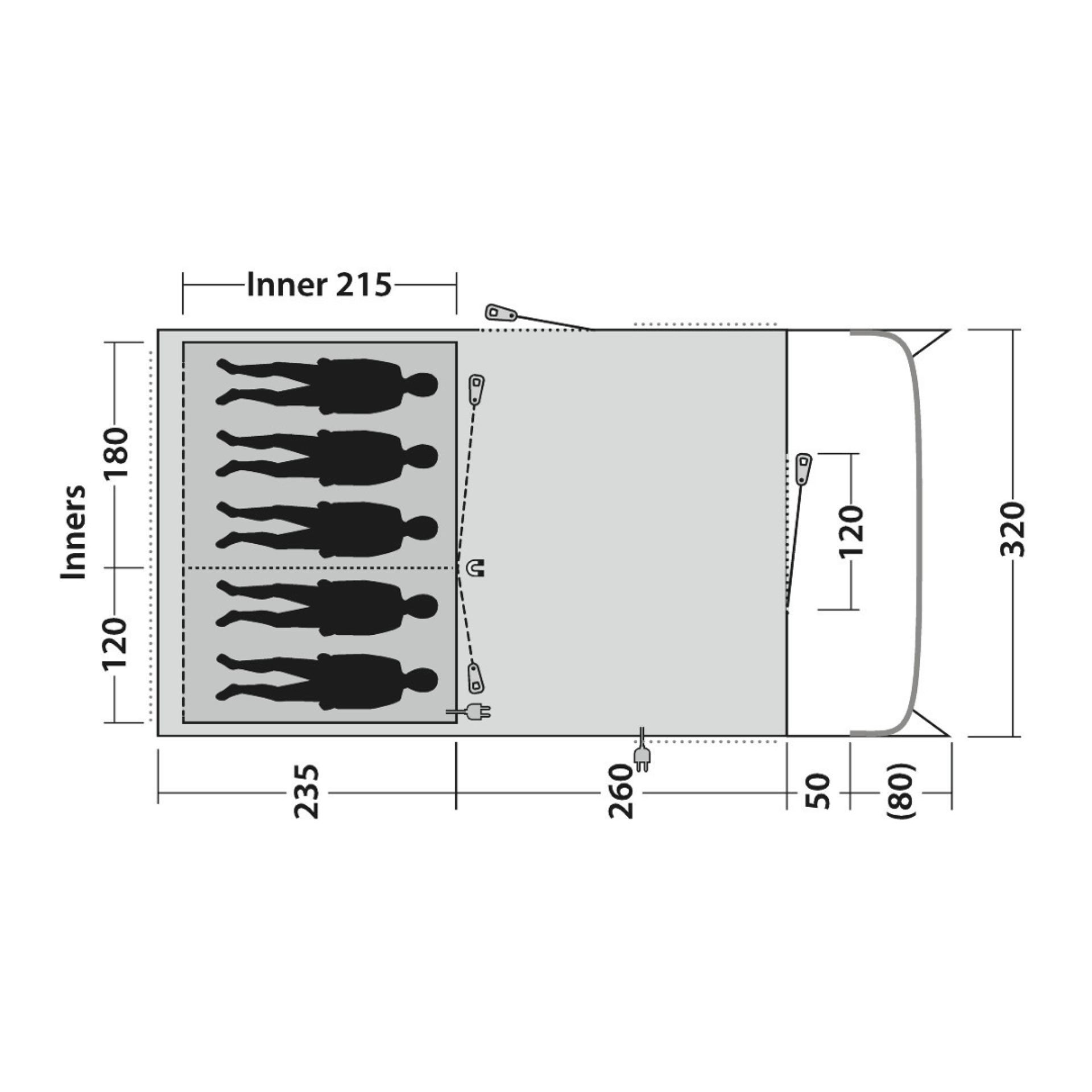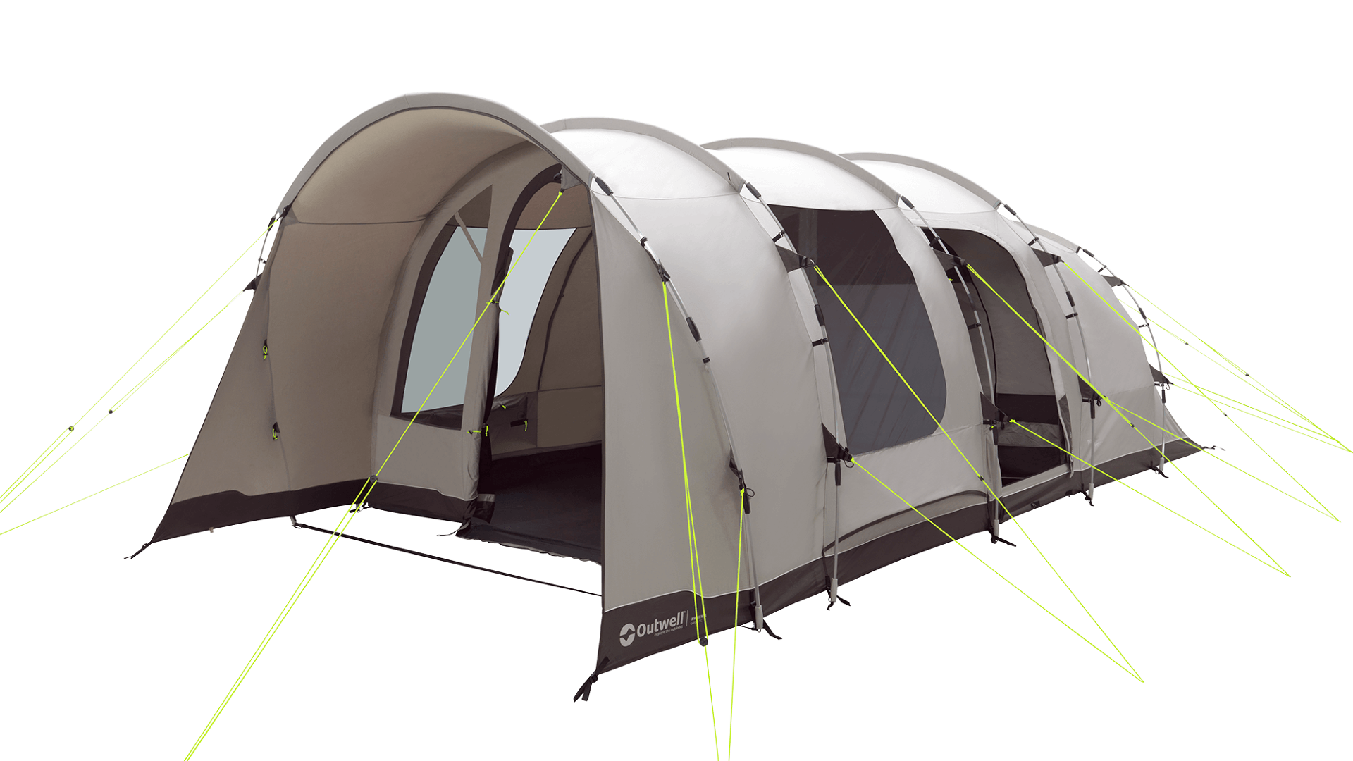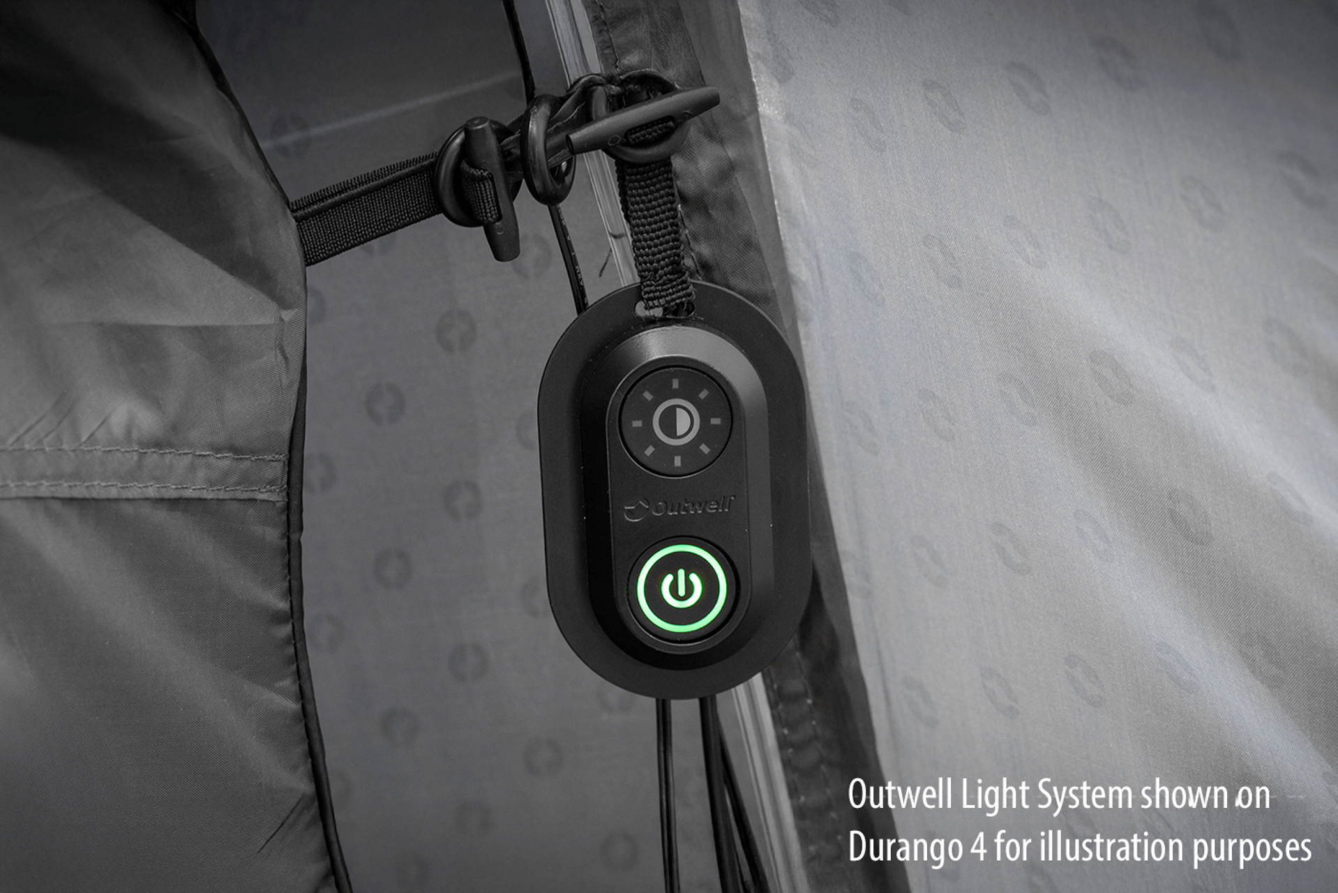 Stan je připraven pro integrovaný Outwell Light System, který poskytuje stmívatelné osvětlení obytné části stanu pro příjemnou atmosféru během dne i večera. Osvětlení je napájeno pomocí USB-C zdroje (napájecí zdroj není součástí balení).