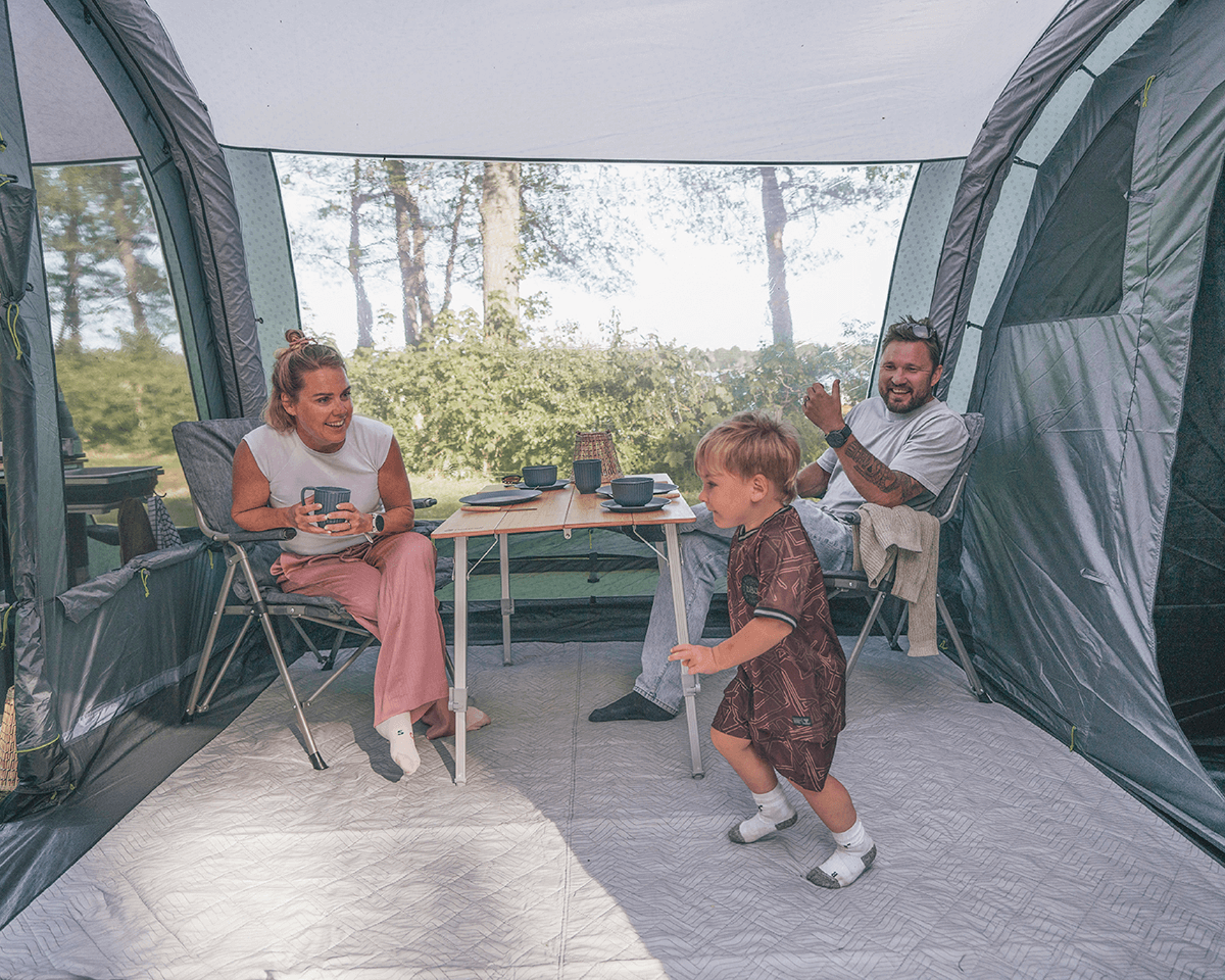Stan využívá koncept Pack Small – Live Large, který pracuje s jednou vzduchovou trubicí méně. Díky tomu je balení kompaktnější a lehčí, přičemž vnitřní prostor zůstává maximálně využitý. Uvolněné místo umožňuje instalaci většího okna a větších bočních dveří, což zlepšuje přístup do stanu i výhled z obytného prostoru.