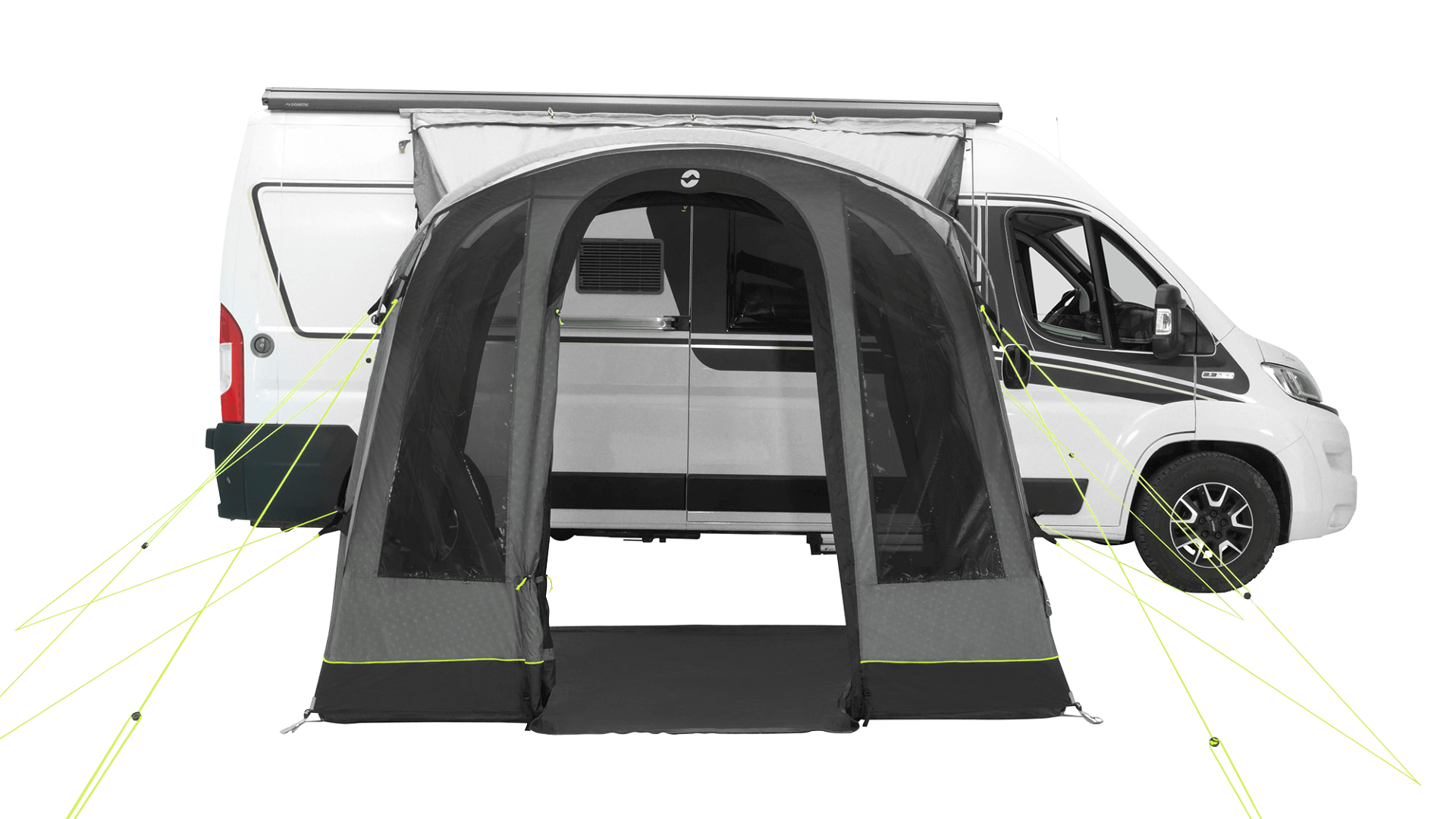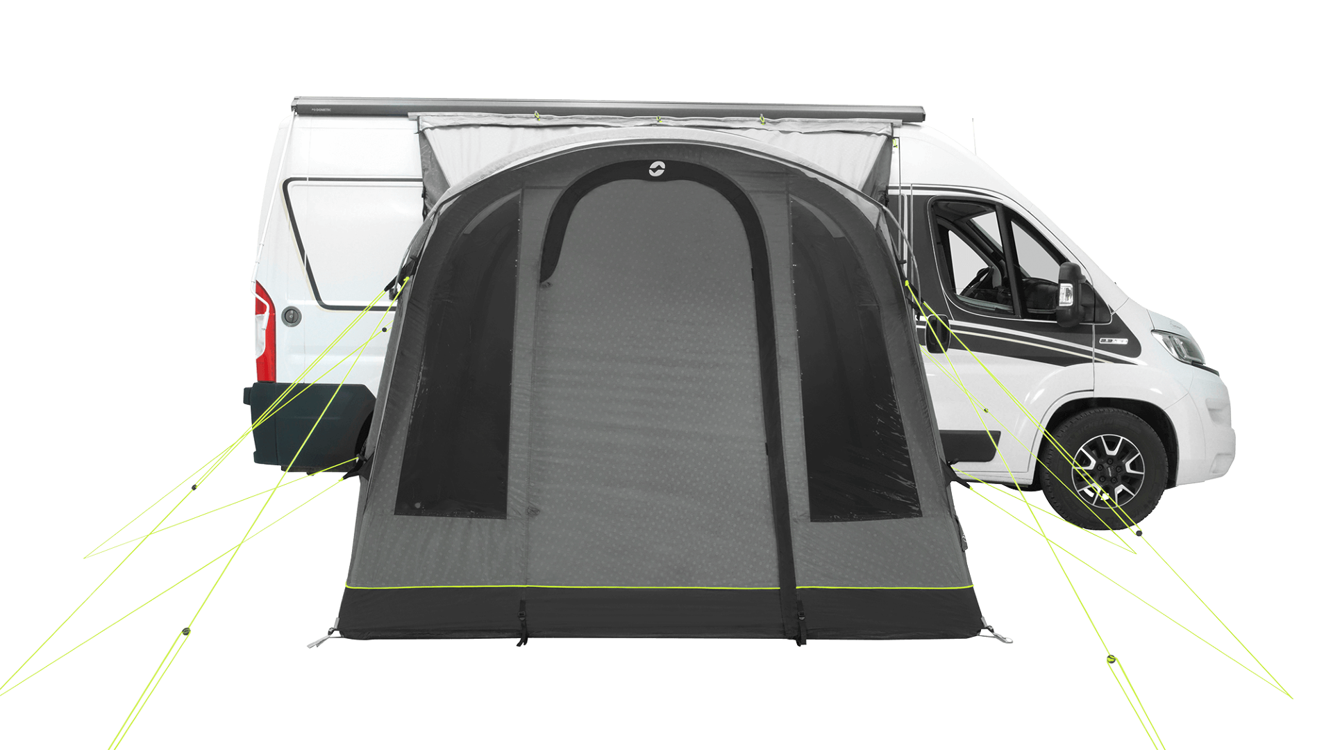 Pro lepší využití prostoru má předstan vertikální přední stěnu se stříškou, která zvyšuje obytný prostor uvnitř předstanu. Předtvarované nafukovací tubusy zároveň poskytují větší výšku stropu a více vnitřního prostoru.