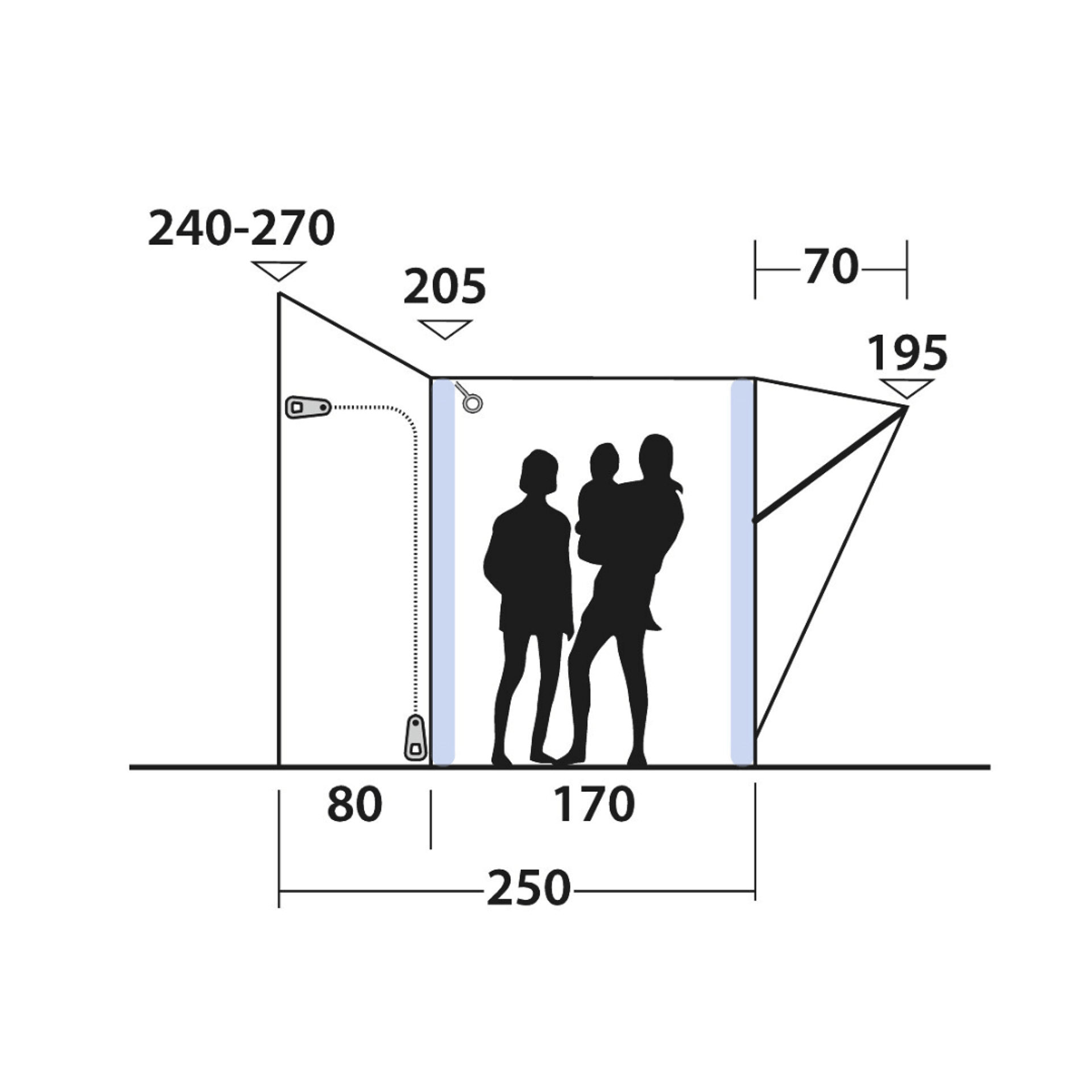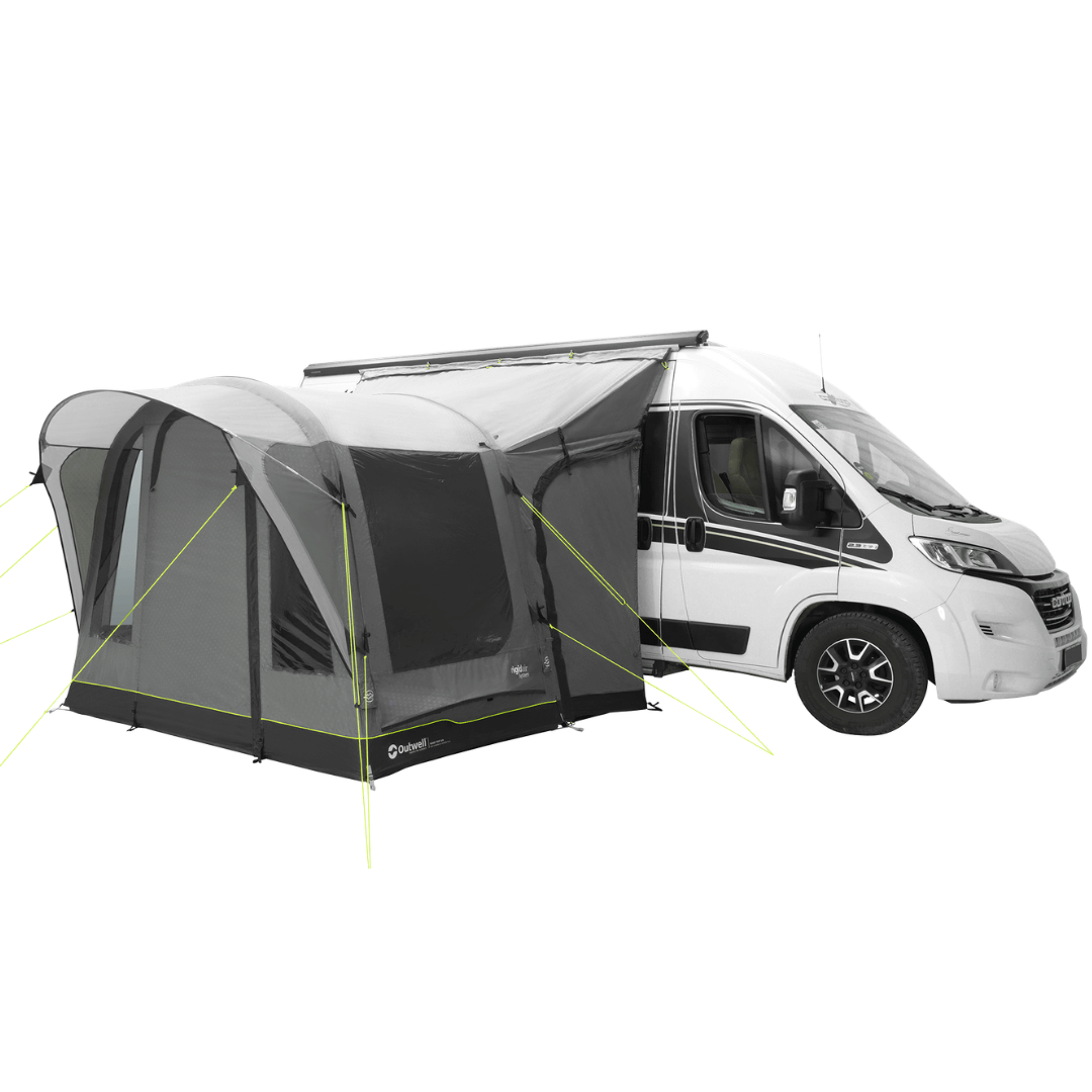 Outwell Santa Monica Air Mid/Tall je nafukovací předstan k dodávce pro vyšší campervany s výškou připojení 240-270 cm, systémem Rigid Air System a prostorným obytným prostorem.