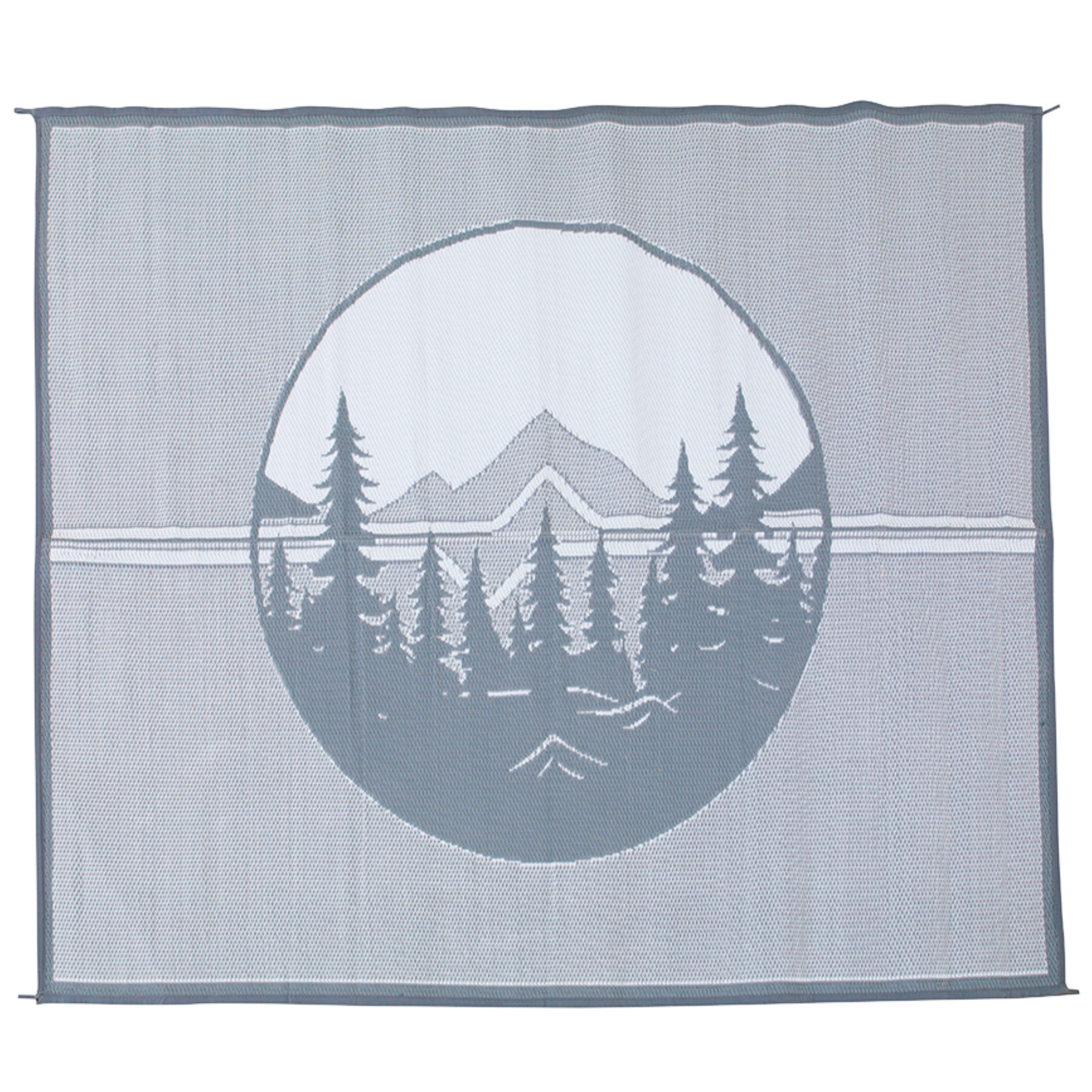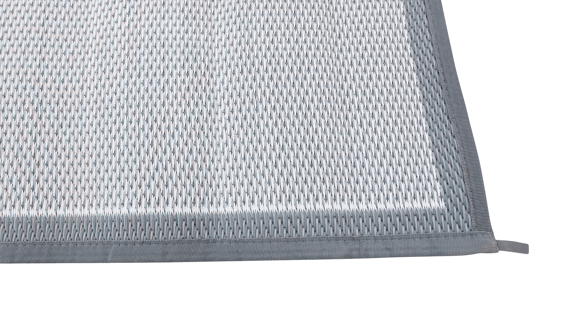 Materiál tvoří polypropylen, který je odolný, lehký a snadno se čistí. Koberec je přizpůsoben pro venkovní použití, takže zvládne běžné podmínky v kempu a je vhodný pro opakované používání.