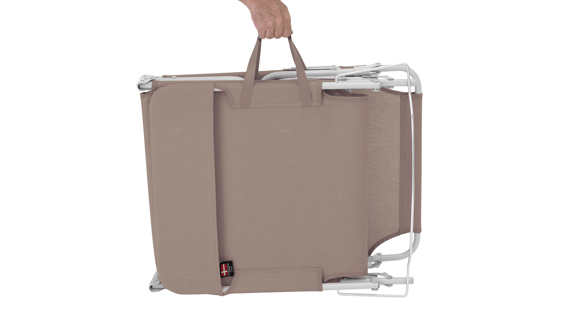 Součástí konstrukce je také praktické madlo pro snadné přenášení, díky kterému lze lehátko jednoduše transportovat nebo uložit do auta.