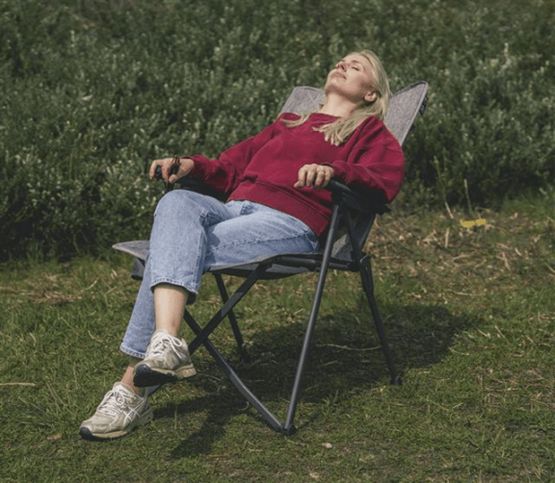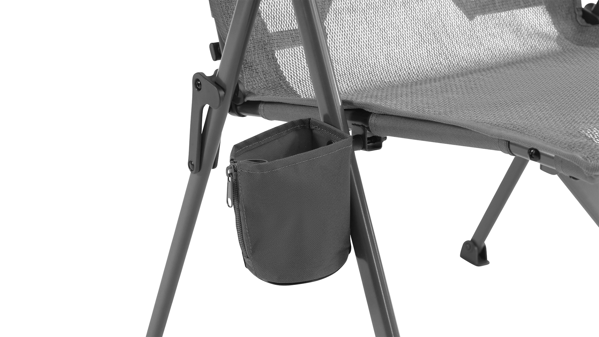 Pohodlné kempingové křeslo s 4 polohami, vysokým opěradlem a držákem na nápoje.