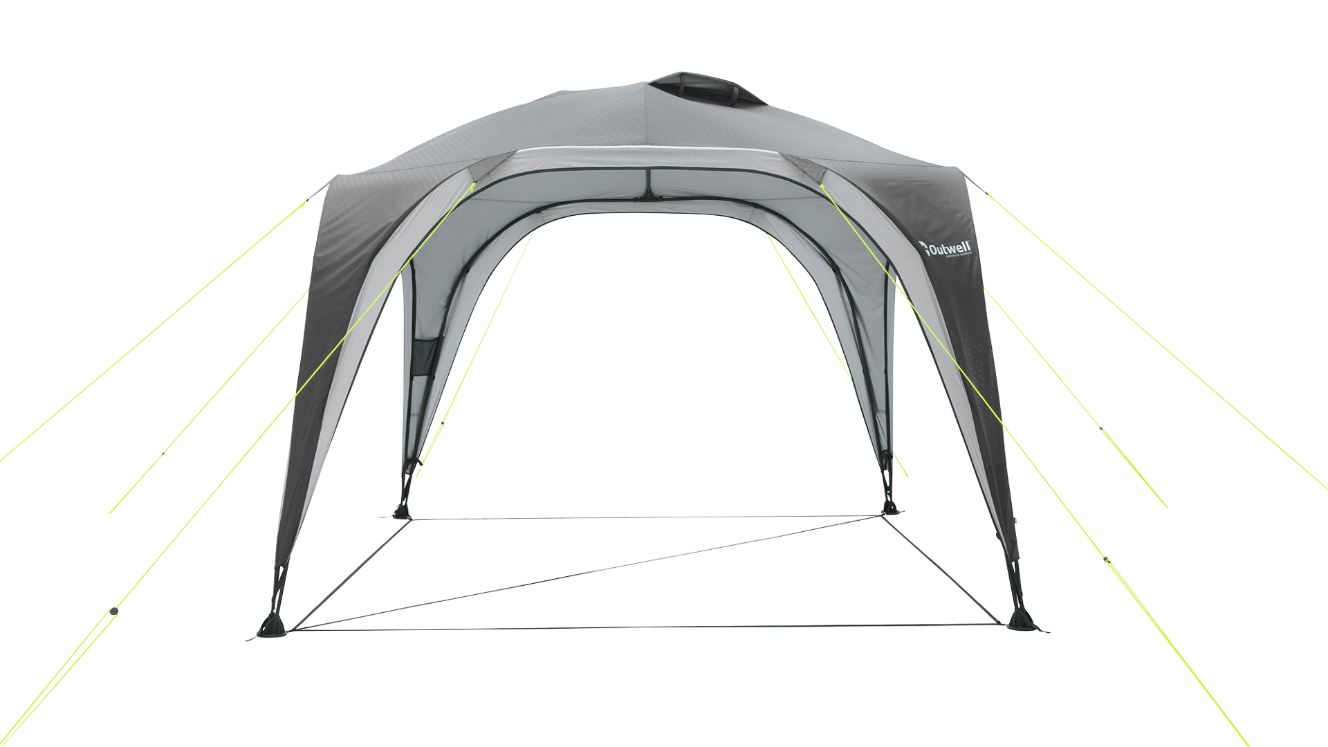 Součástí konstrukce je také závěsný bod pro lucernu, který umožňuje zavěšení osvětlení při večerním posezení. Pro zlepšení cirkulace vzduchu je přístřešek vybaven ventilačním otvorem Apex vent, který pomáhá odvádět teplý vzduch a zajišťuje příjemnější klima uvnitř.