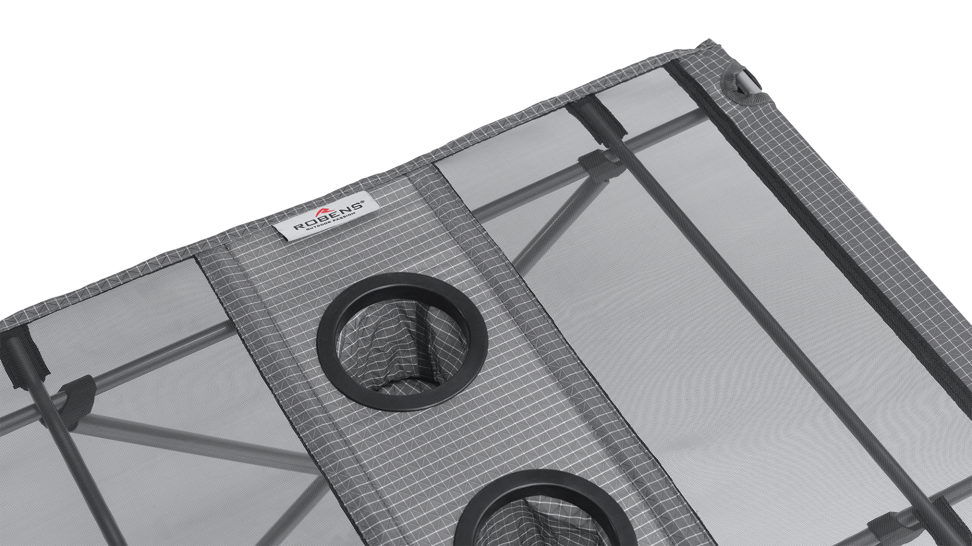 Deska stolu je vyrobena z 200D ripstop nylonu s PE vláknem a mesh prvky, což zajišťuje odolnost proti opotřebení a zároveň nízkou hmotnost. Konstrukce je navržena tak, aby byla funkční a snadno přenosná.