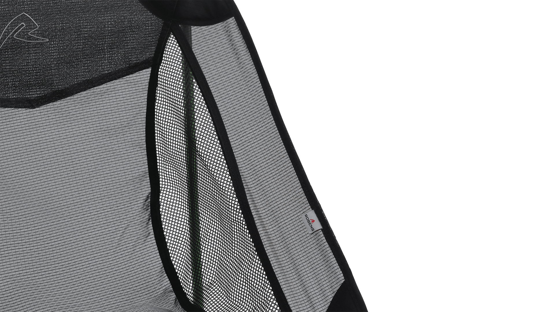 Sedací část je vyrobena z 300D nylonu s dvojitým ripstopem, který je odolný proti poškození. Síťované panely (mesh) zajišťují výbornou prodyšnost, což výrazně zvyšuje komfort při sezení, zejména v teplém počasí.
