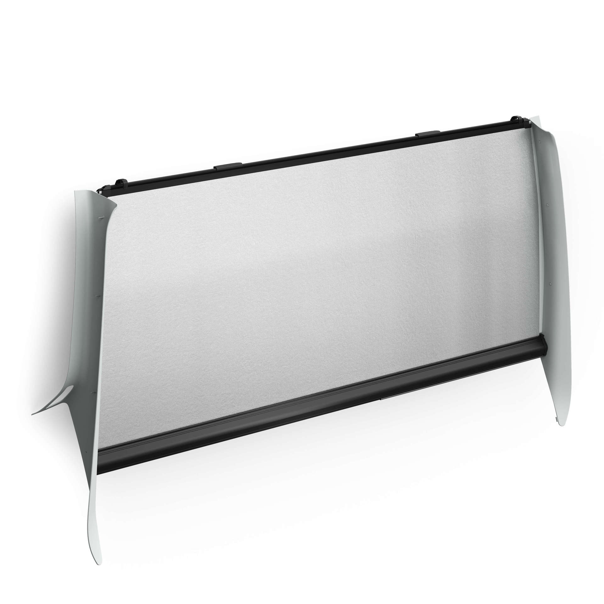 Tento zatemňovací systém pro čelní sklo využívá hliníkem potaženou tkaninu, která účinně pomáhá regulovat teplotu v interiéru – chrání před přehříváním v létě i únikem tepla v chladnějším počasí. Zároveň poskytuje maximální ochranu soukromí.