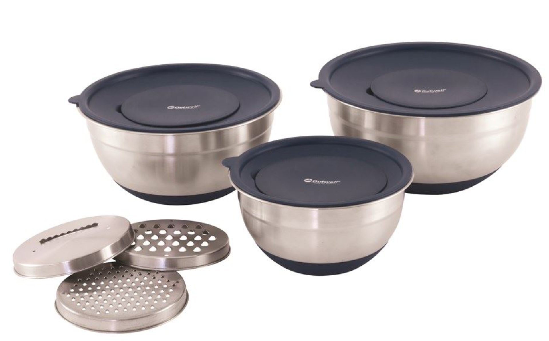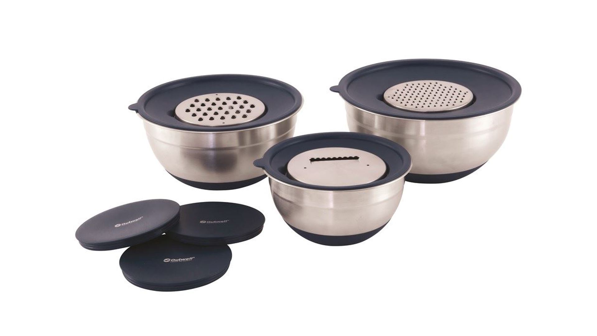 Sada misek se struhadly s víkem Chef Bowl Set Lids & Graters. Využít se dá jak doma, tak i na cestách. Skvělá je zejména na kempování, ale neztratí se ani na chatě.