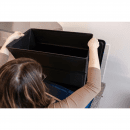 Box je vyroben z odolného polypropylenového plastu a vybaven dvěma pevnými bočními madly pro pohodlné přenášení. Rozměry 62 × 33 × 33 cm v rozloženém stavu poskytují dostatečný prostor, zatímco ve složeném stavu (62 × 33 × 11 cm) je mimořádně skladný.