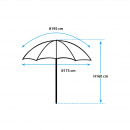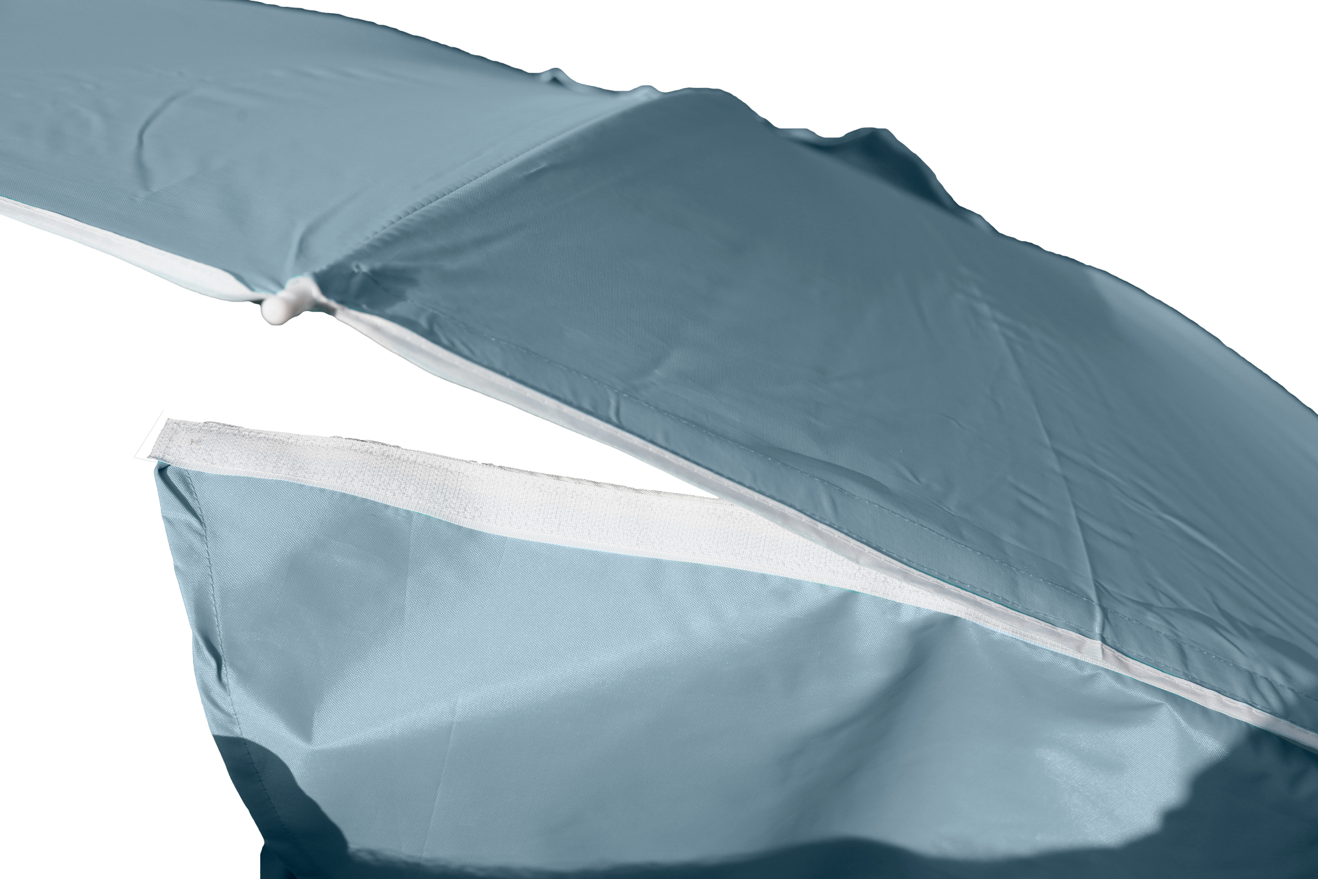Plátno slunečníku je vyrobeno ze 100% polyesteru s UV ochranou UPF 50+, což znamená, že propustí jen 1/50 UV záření a blokuje až 98 % škodlivých slunečních paprsků. Díky speciálním upevňovacím páskům je možné ke konstrukci připevnit 1 až 2 boční stěny, čímž vytvoříte efektivní závětří nebo větší stínovou plochu.