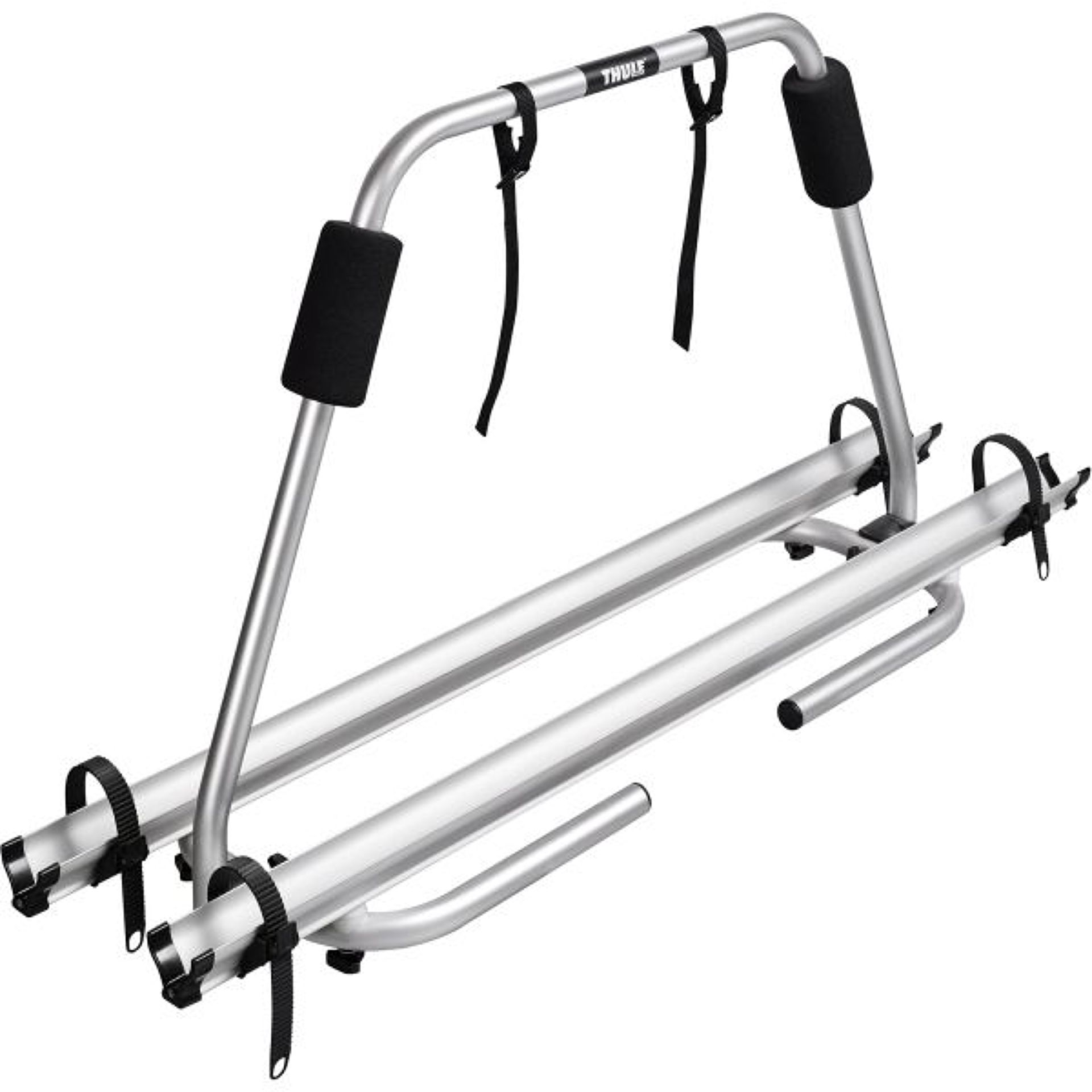 Lehký a skladný nosič na oj pro 2 kola s částečně sklopným rámem, pěnovými chrániči a nosností 20 kg na kolo.