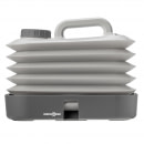 Tento 10litrový zásobník kombinuje lehkost a robustnost s mimořádnou praktičností. Inovativní skládací konstrukceumožňuje zmenšit výšku nádoby z 28 cm na pouhých 11 cm, takže ji po použití snadno uložíte do batohu, karavanu nebo kufru. Když je potřeba, stačí lehce zatlačit na dno a nádoba se rozloží do plné velikosti.