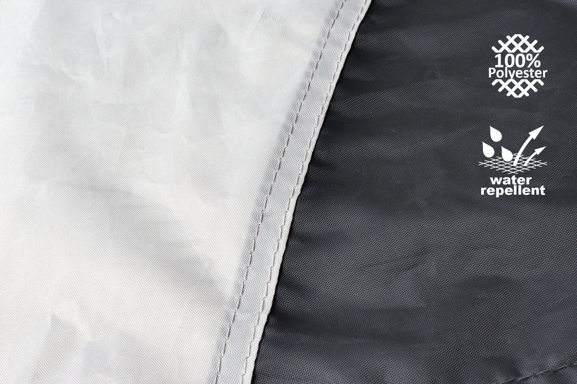 Obal je vyroben z odolné polyesterové tkaniny s vodoodpudivou úpravou, která poskytuje ochranu před nepříznivým počasím během jízdy. Materiál je pevný a zároveň dostatečně flexibilní pro snadnou manipulaci při nasazování a sundávání.