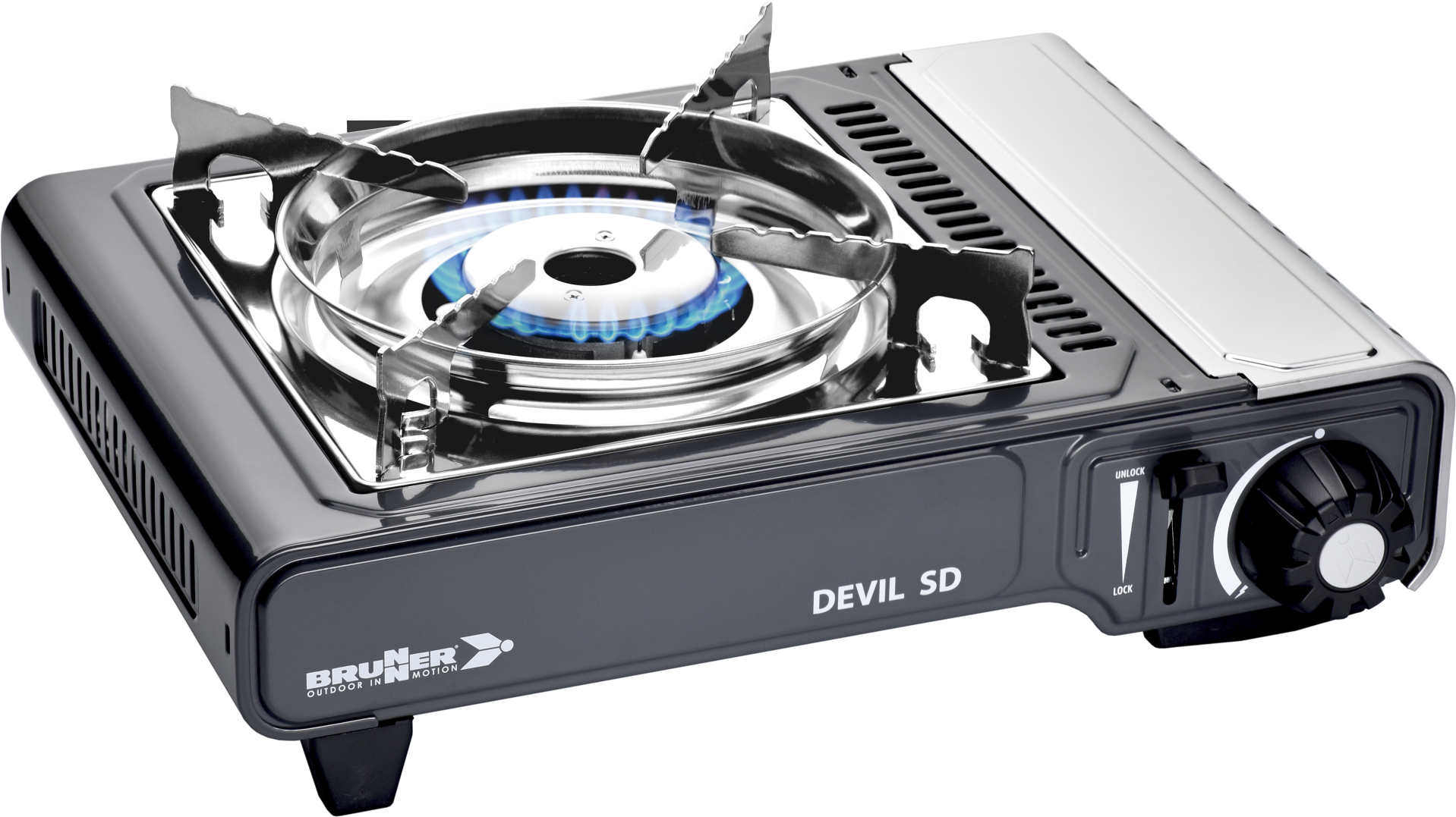 Brunner Devil SD NG je plynový vařič s výkonem 2,2 kW a bezpečnostní pojistkou s termočlánkem, který nabízí moderní konstrukci, nerezové prvky.