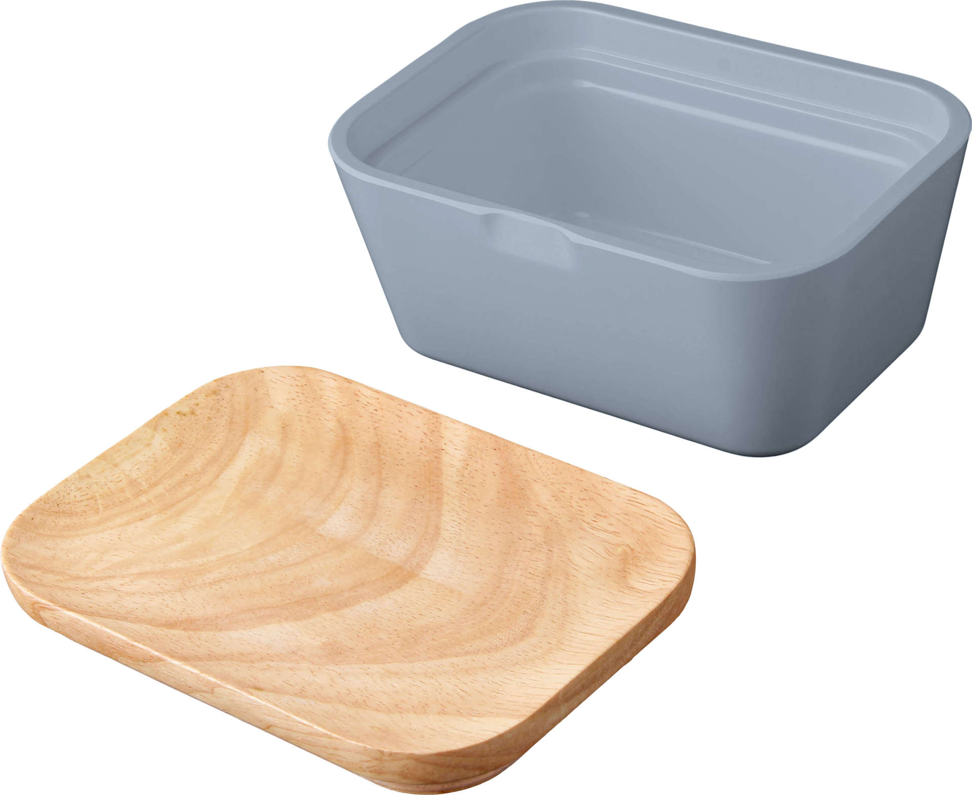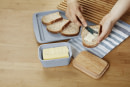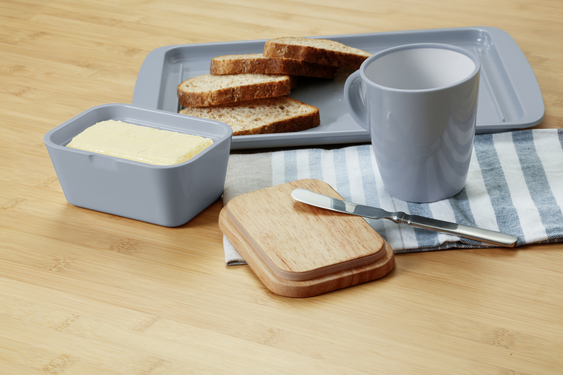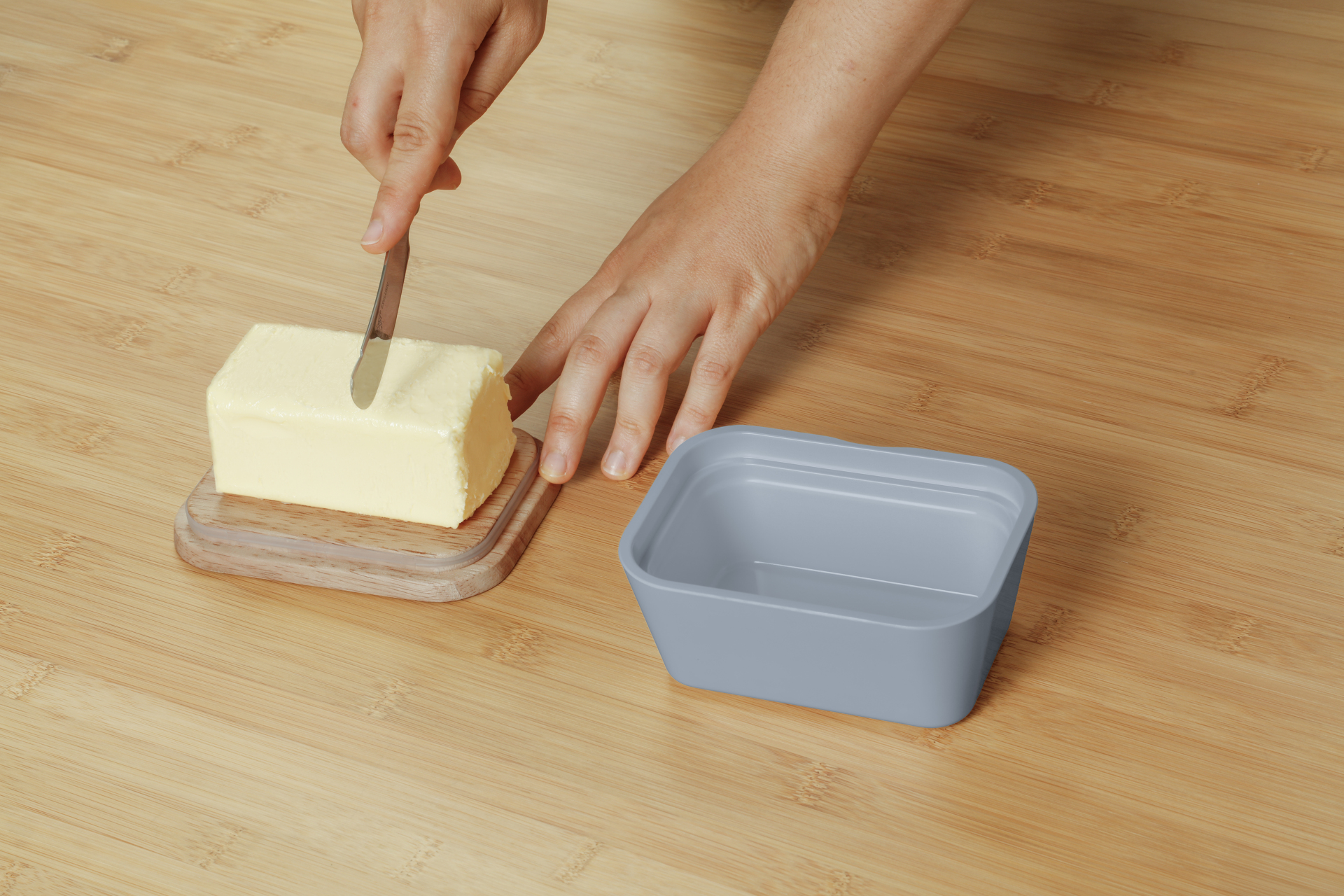 Brunner máselnice šedá je dóza na máslo z odolného melaminu s bambusovým víkem, má protiskluzovou základnu a je vhodná pro běžné velikosti másla.