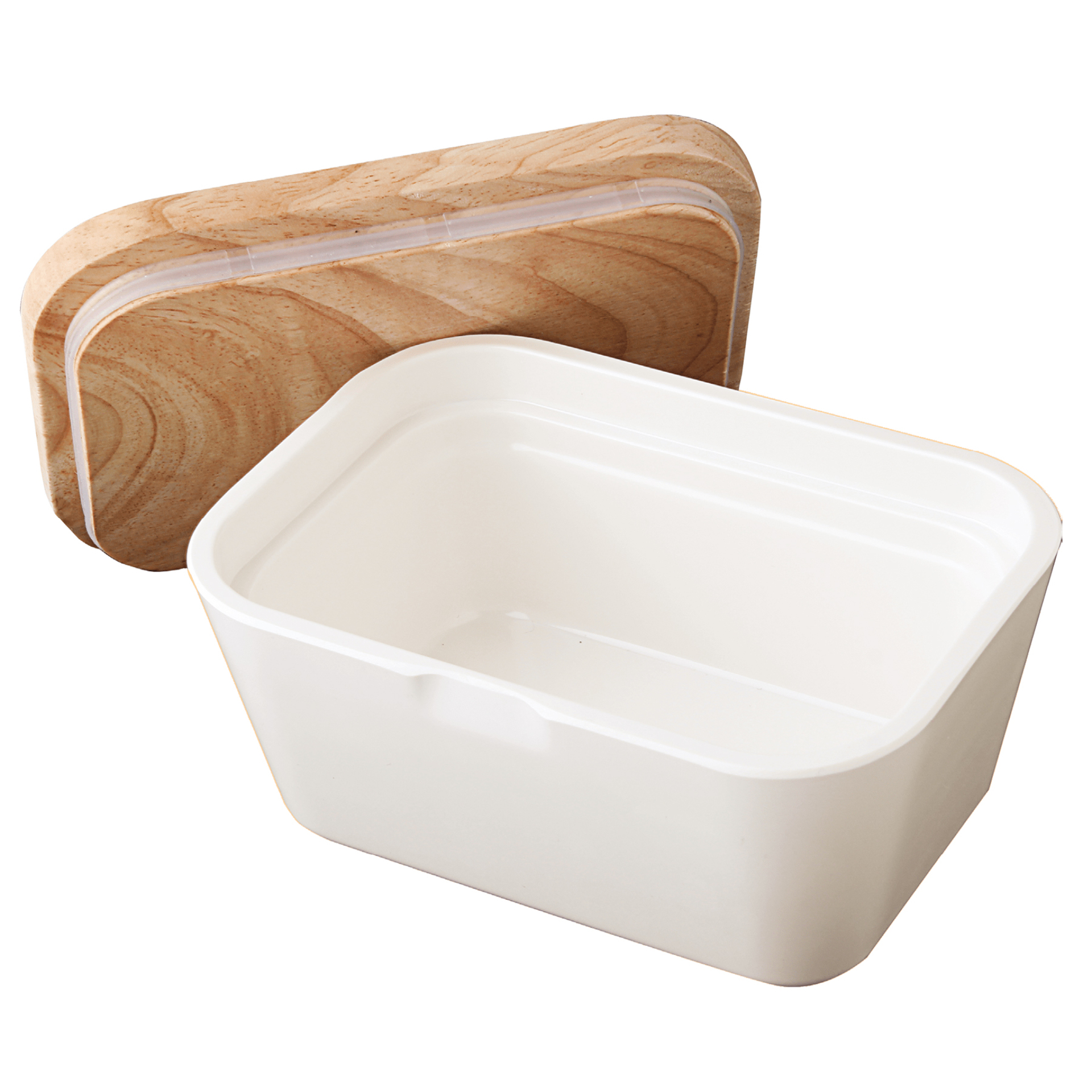 Víko je vyrobeno z přírodního bambusu, který dodává elegantní vzhled a přirozený šmrnc. Celkově tak máselnice působí velmi stylově a zapadne do moderní kuchyně i do karavanu. Je navržena pro uchování másla běžné velikosti a zajišťuje jeho hygienické skladování i servírování.