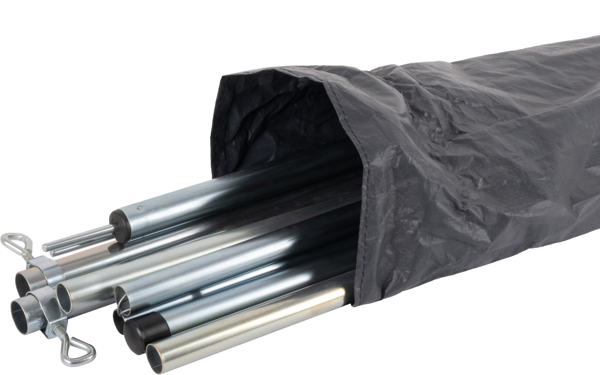 Součástí balení jsou všechny nezbytné součásti pro stavbu: kolíky, napínací šňůry, svislé ocelové tyče a spojovací tyč s úchyty. Vše je zabaleno v kompaktní transportní tašce o velikosti 90 × 20 × 12 cm, váží pouze 6 kg.