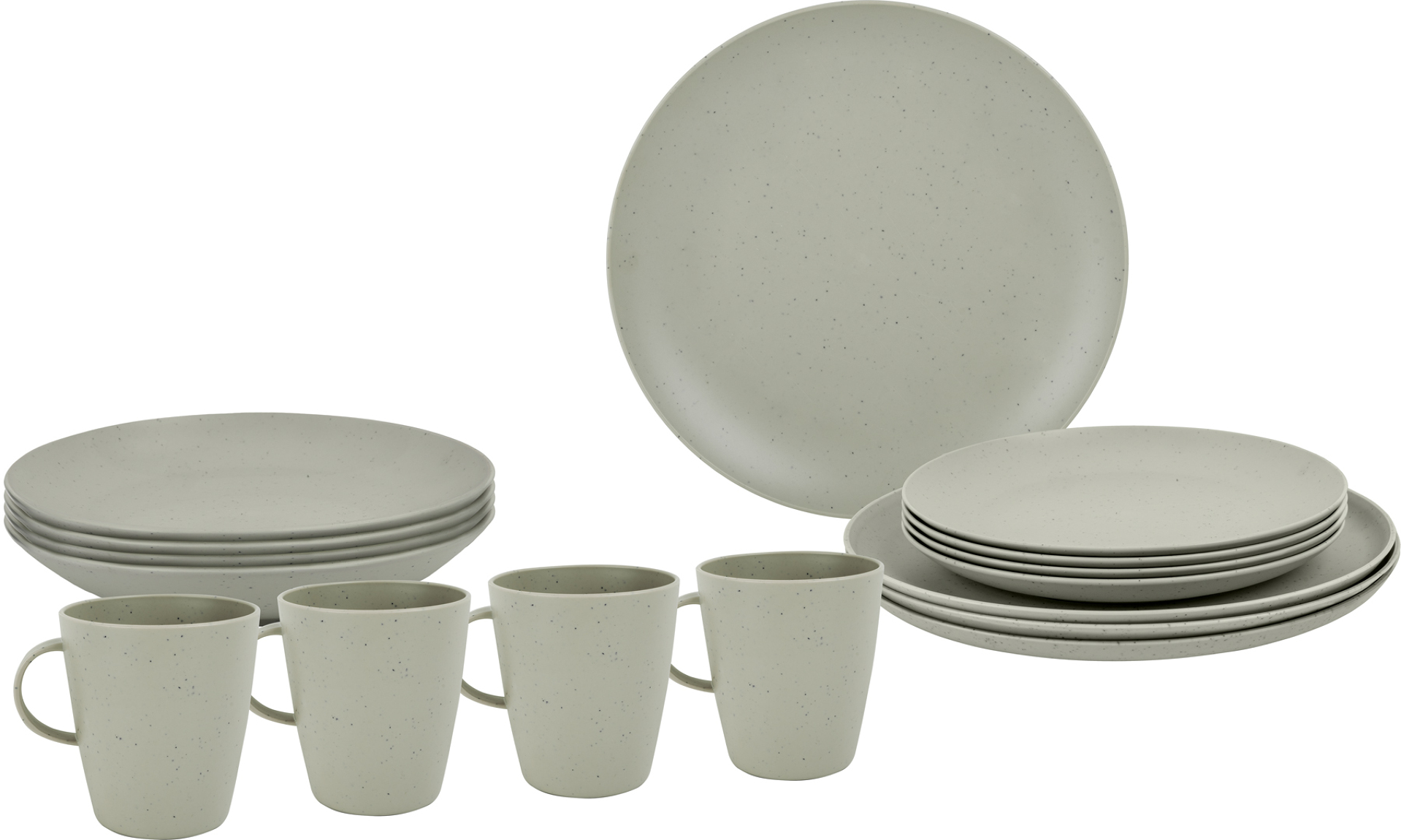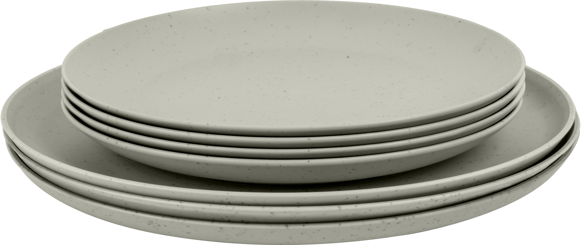 Ekologická sada nádobí z PLA pro 4 osoby kompostovatelná, bez BPA, vhodná do mikrovlnky, s protiskluzovou úpravou. Nevhodná do myčky.