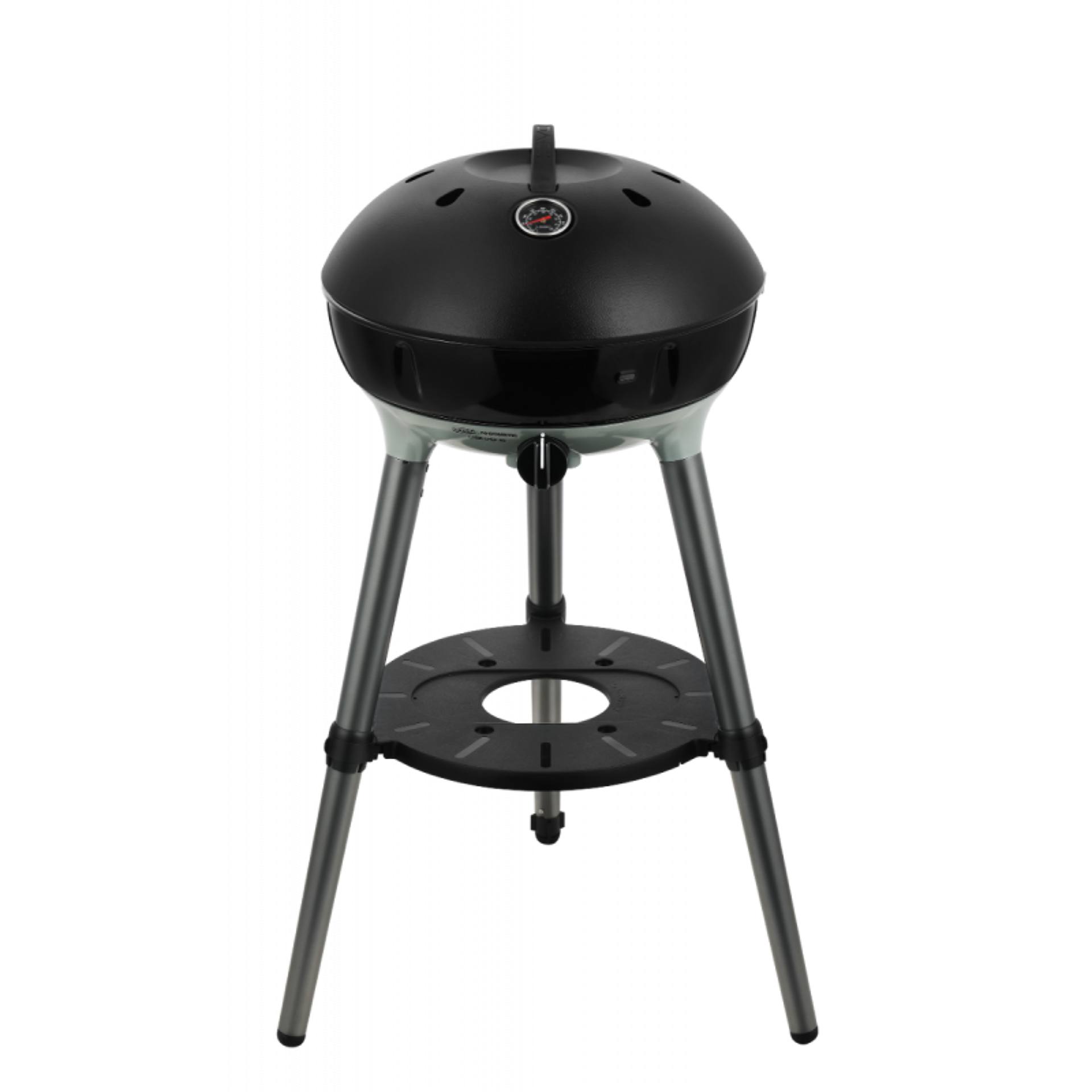 Gril je vybaven výkonným hořákem o výkonu 2,7 kW a automatickým piezo zapalováním, takže se rychle a bez námahy zahřeje na požadovanou teplotu. Víko s teploměrem pomáhá udržet optimální teplotu uvnitř a zároveň slouží jako ochrana proti větru. Stabilitu i na nerovném povrchu zajišťuje nastavitelná noha.