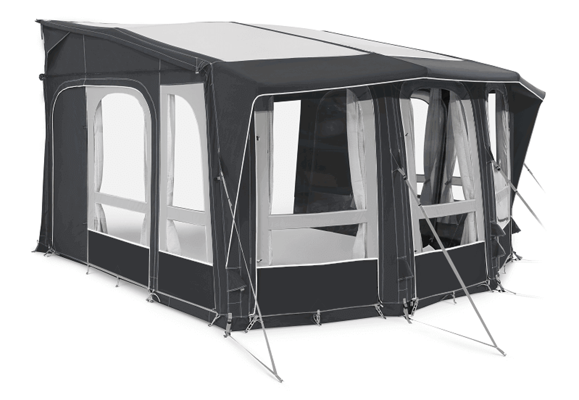 Nafukovací, celoroční stan s velkým prostorem. Určeno pro karavany a obytné vozy s kedrovou přípojkou. Šířka 500 cm, výška 265 cm.