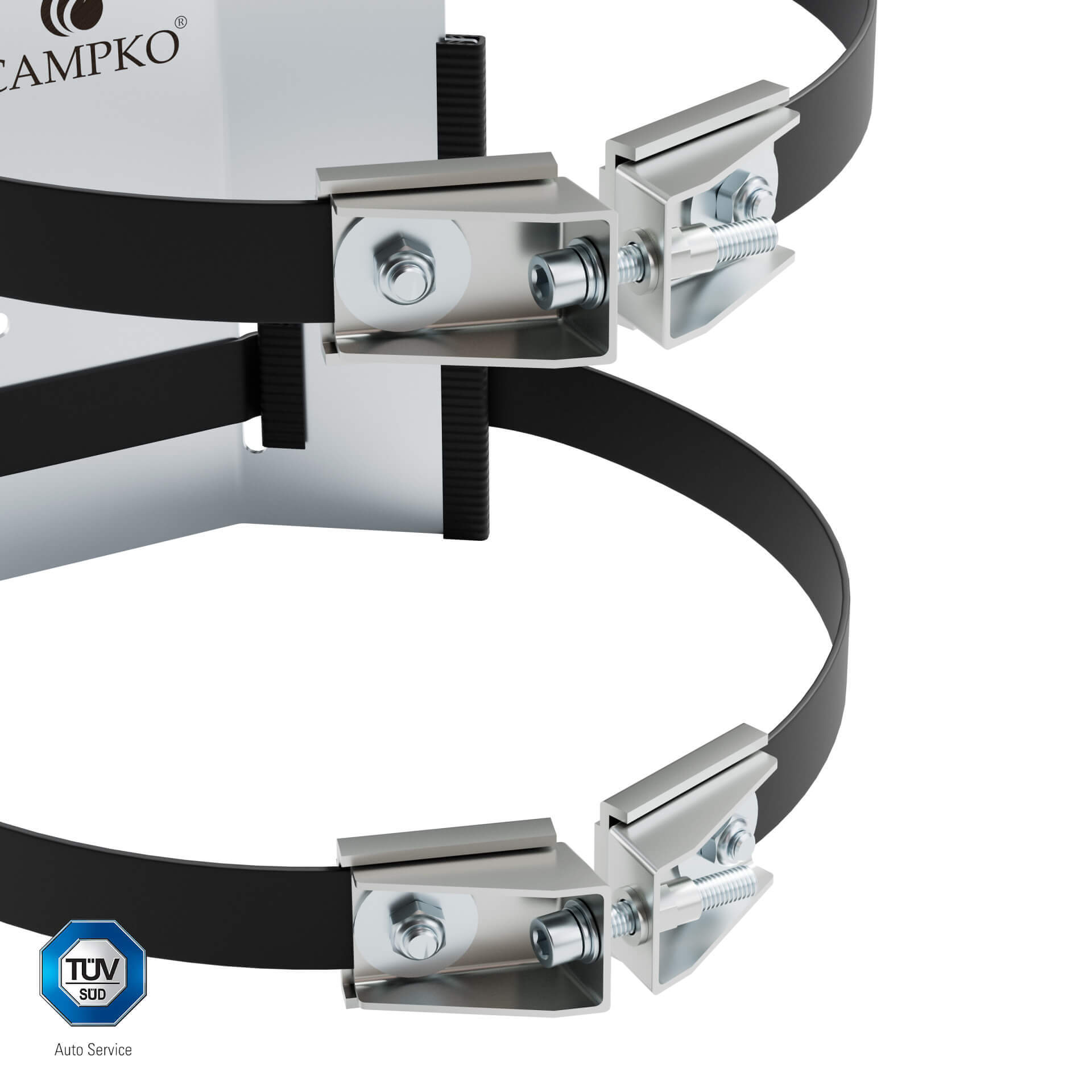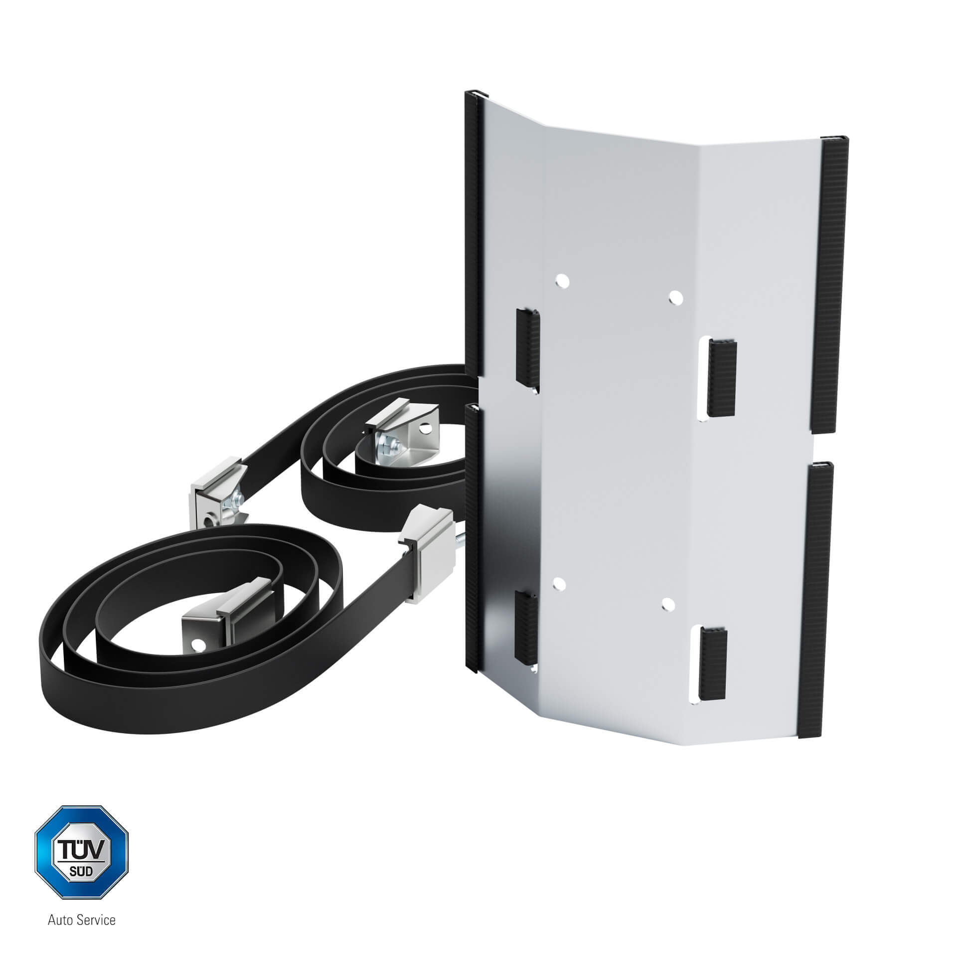 • Součást balení: 1x držák, 2x napínací pás (guma+nerez), 2x napínák (nerez), montážní materiál