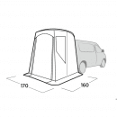 Easy Camp Krossbu Mini je šikovná, lehká přístavba určená k připojení na zadní dveře menších dodávek a kombíků, jako jsou Peugeot Rifter, Citroën Berlingo nebo VW Caddy. Tento praktický doplněk vám umožní rozšířit obytný prostor vozidla, ať už chcete připravit jídlo, převléknout se nebo se schovat před nepřízní počasí.