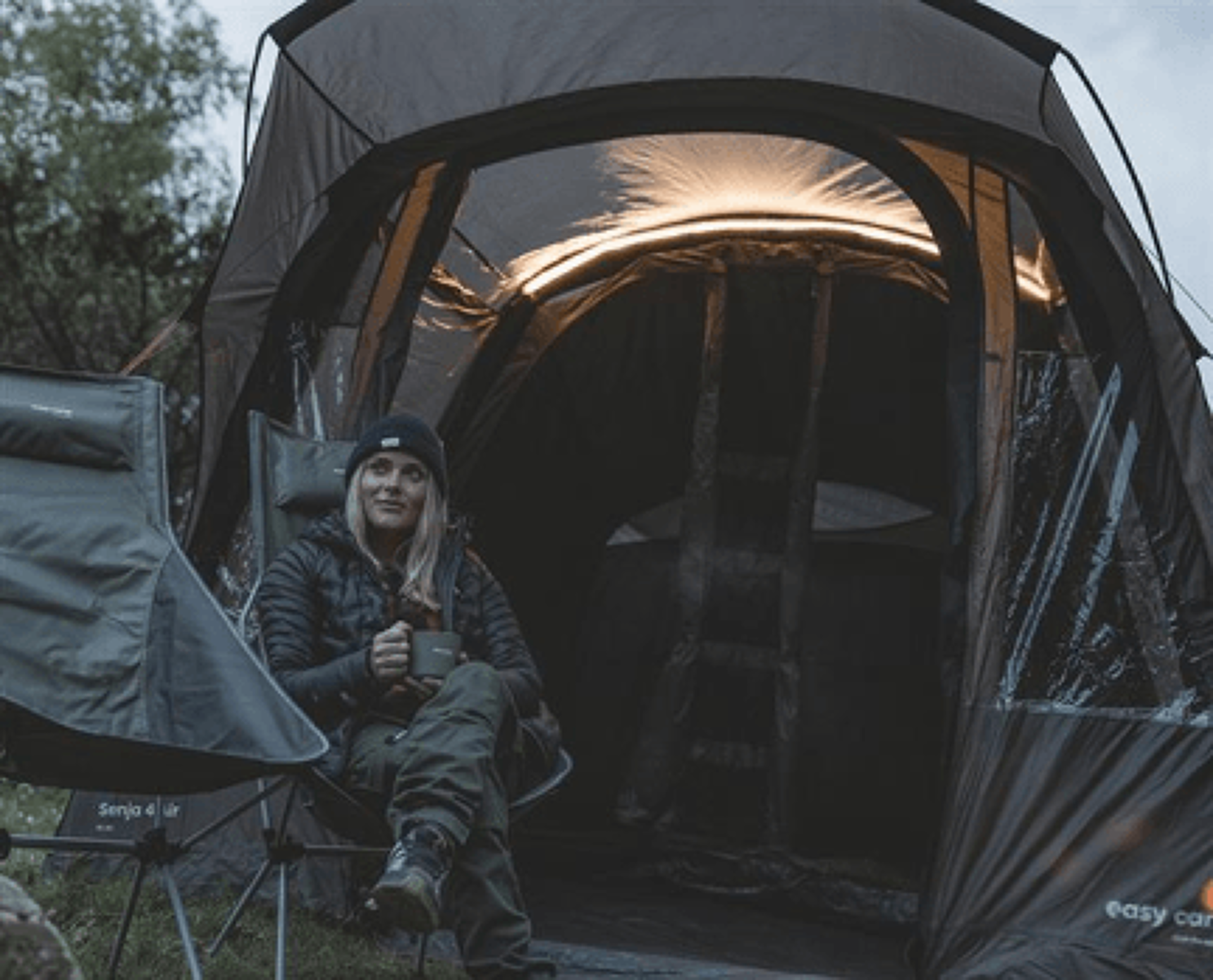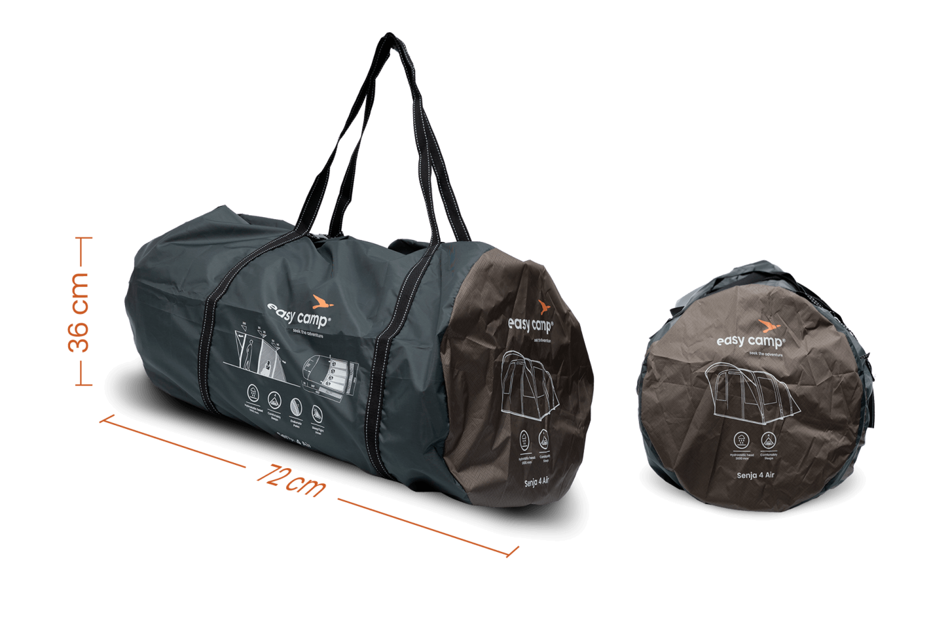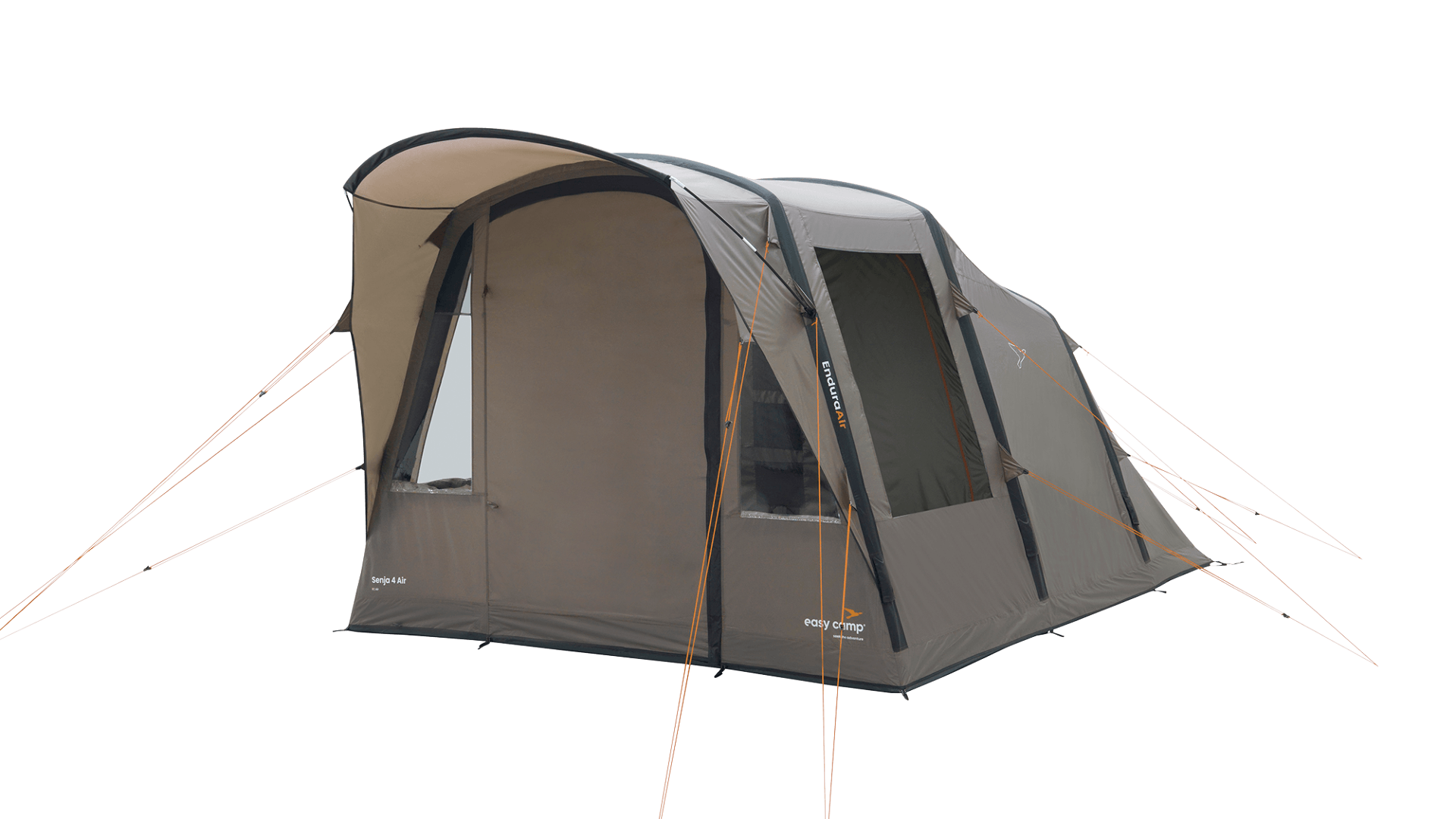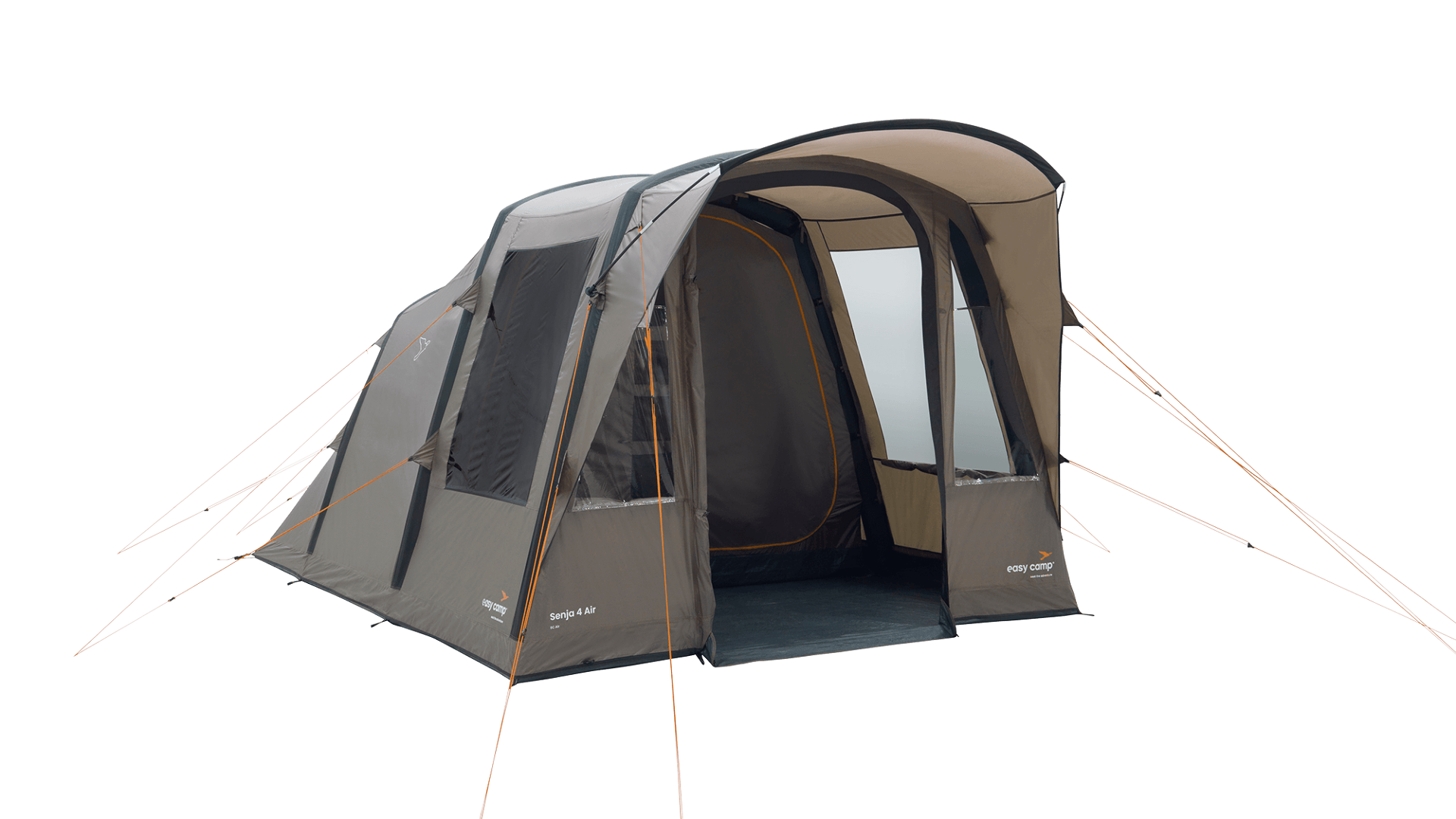 Easy Camp Senja 4 Air je nafukovací rodinný stan pro 4 osoby s rychlou stavbou, vodním sloupcem 3000 mm a prostornou obytnou částí.