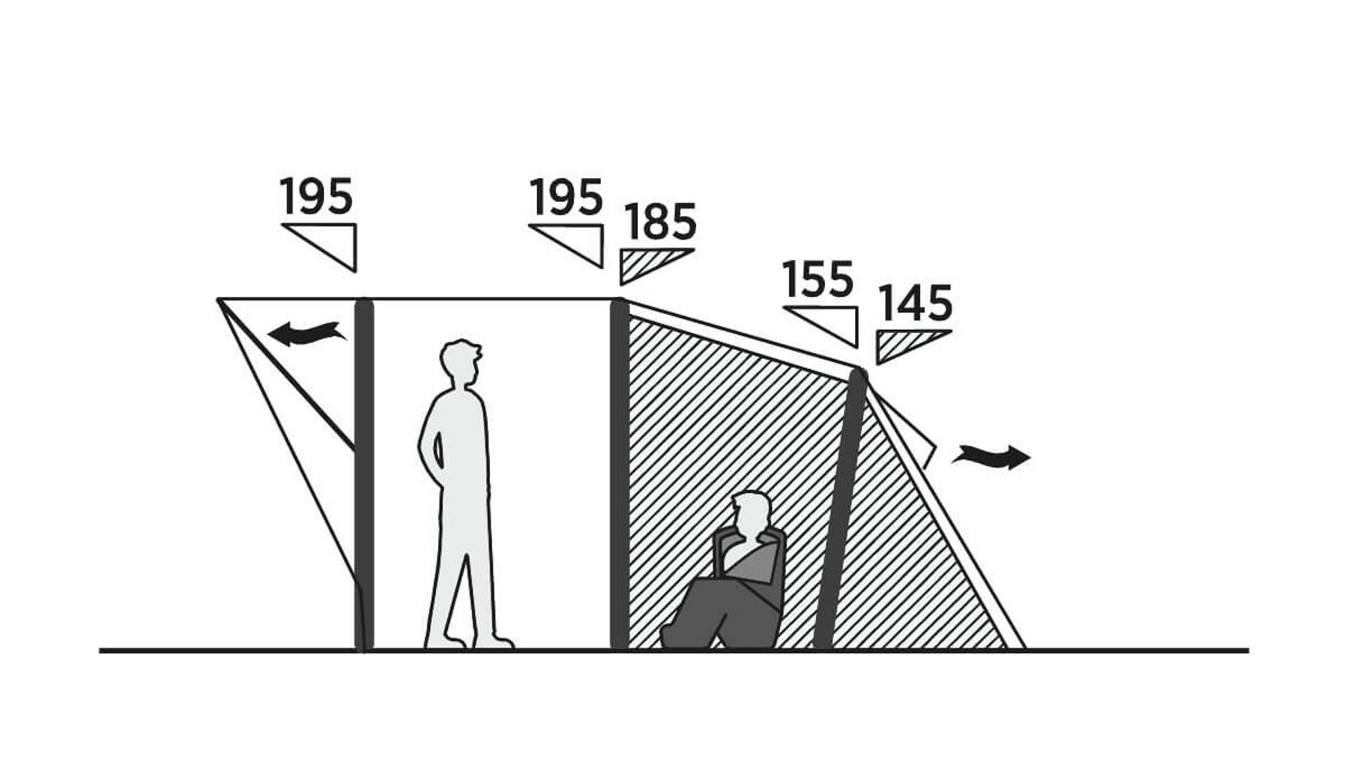 Tento tunelový stan nabízí 2 ložnice a prostornou obytnou část, která poskytuje dostatek místa pro relaxaci i společné aktivity. Díky plné výšce pro stání v obytné části je pohyb uvnitř velmi komfortní.