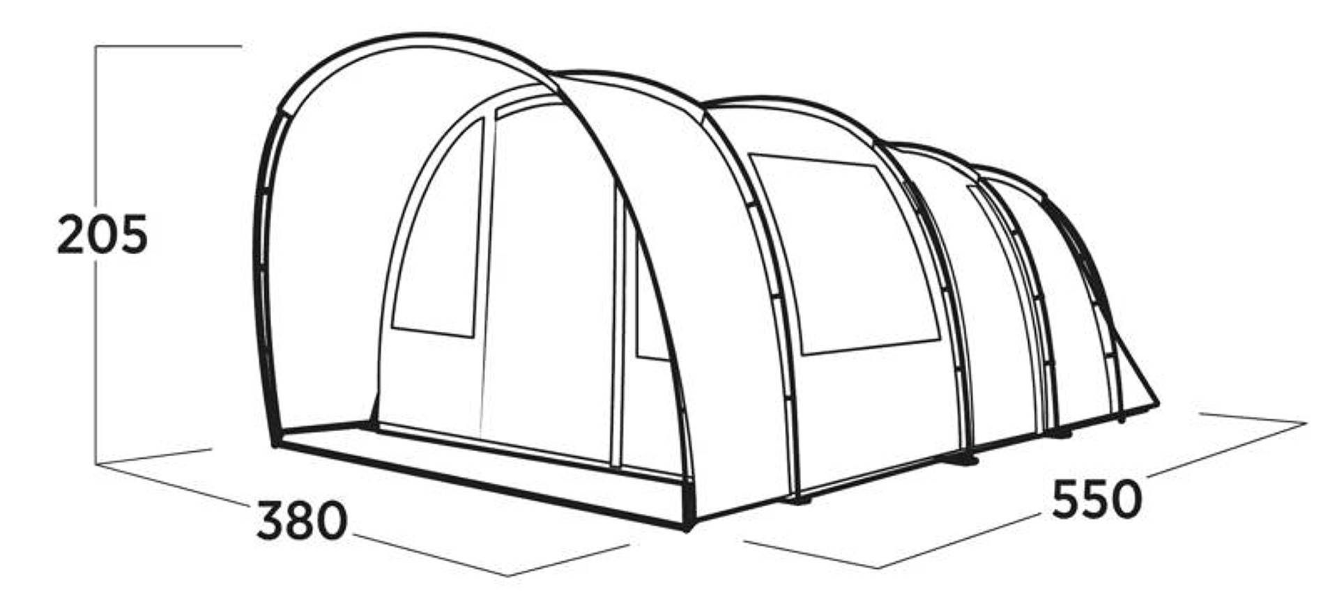 Stan je vybaven velkým předním vchodem s ochranou proti dešti a bočním vchodem s plně síťovanými dveřmi, které poskytují výborné odvětrávání a chrání před hmyzem. Sešitá podlážka zabraňuje průvanu, vlhkosti a vniknutí hmyzu, což výrazně zvyšuje komfort pobytu.