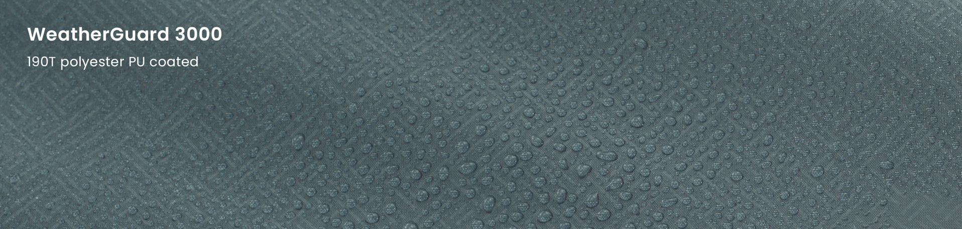 • Materiál tropika: WeatherGuard 3000, 190T polyester PU coated, PFC free