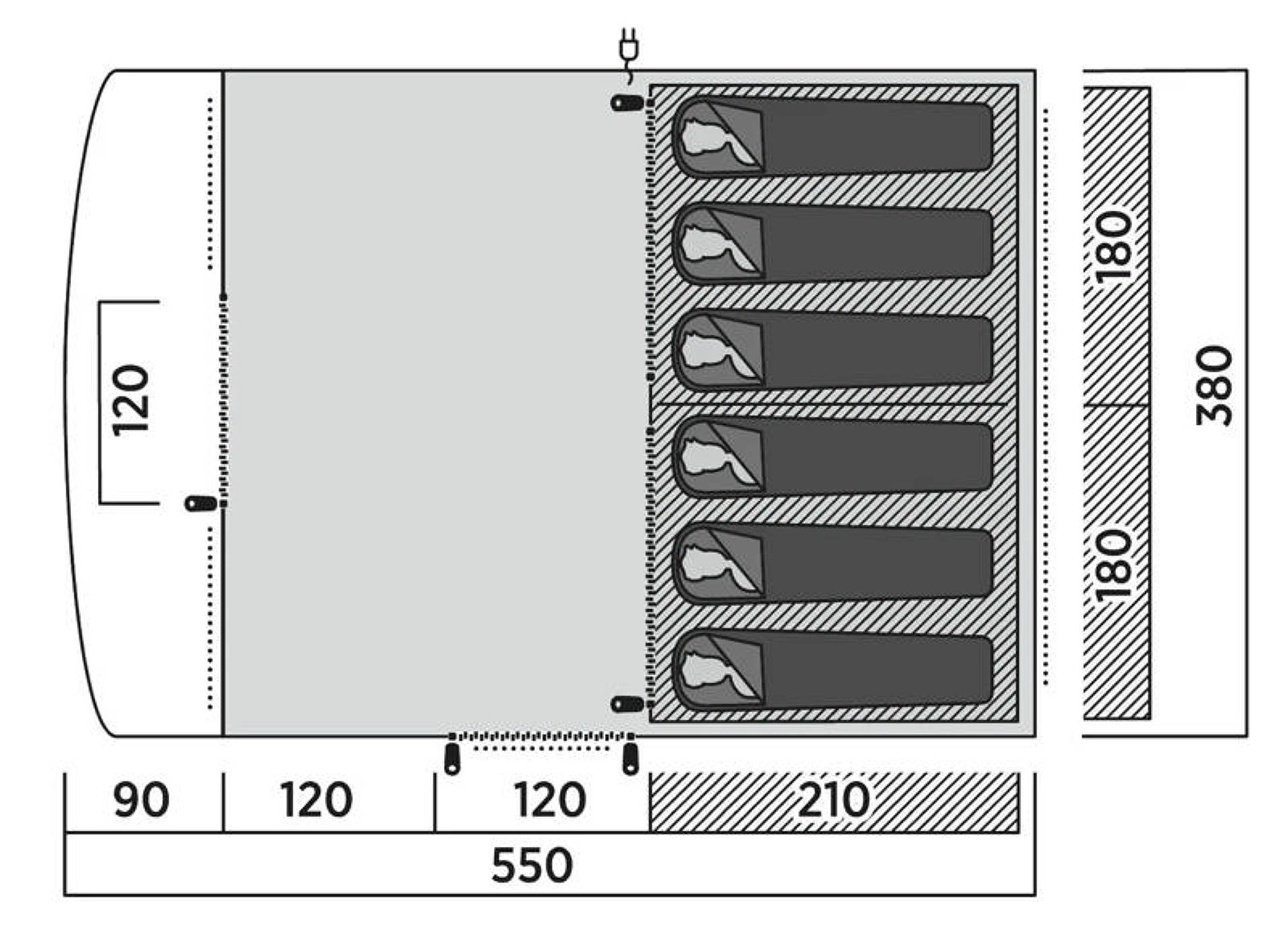 Rozměry stanu 460 × 260 × 185 cm 470 × 320 × 195 cm 550 × 380 × 205 cm